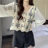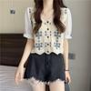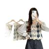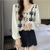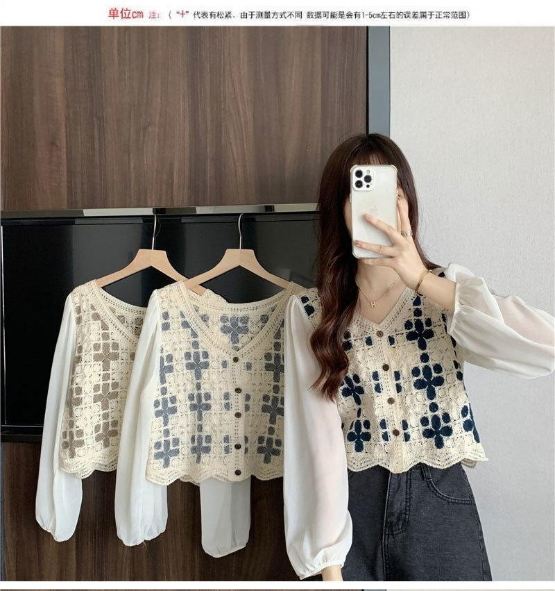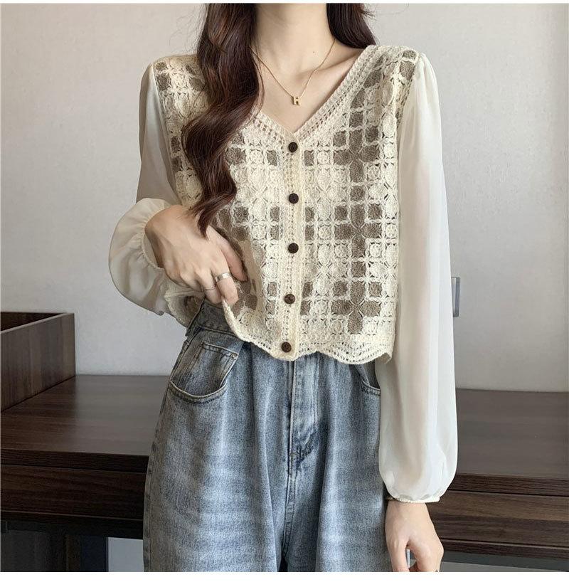 Compre Camisa de Renda Vazada com Flor Bordada 2024 Primavera Novo Estilo Fashion Manga Longa Patchwork Top Curto Feminino Moderno no atacado no Joom.pro