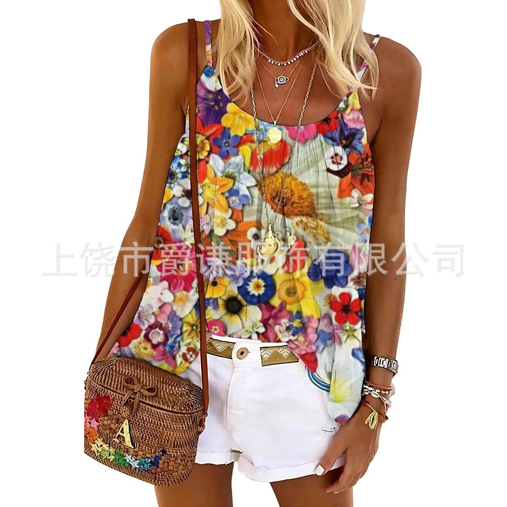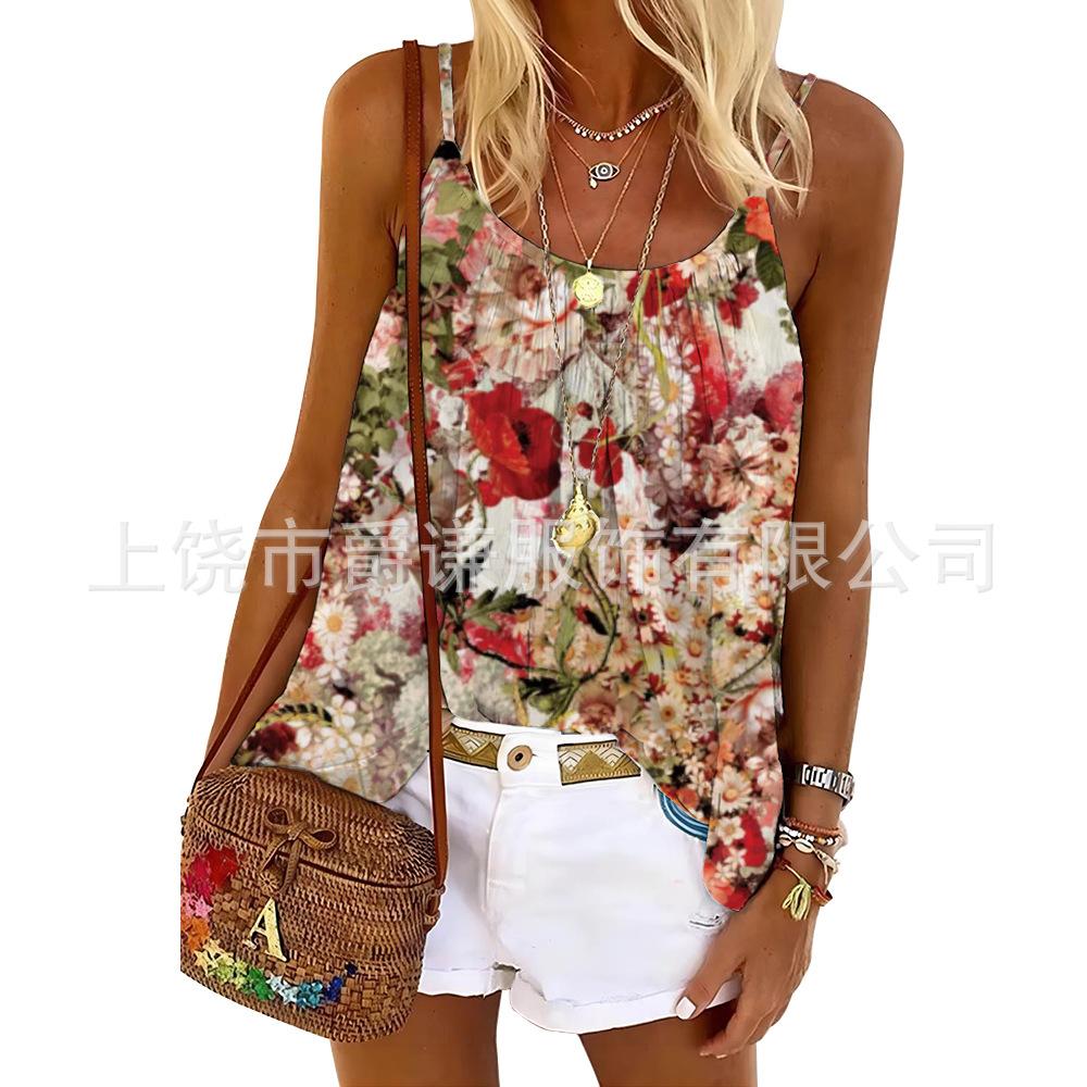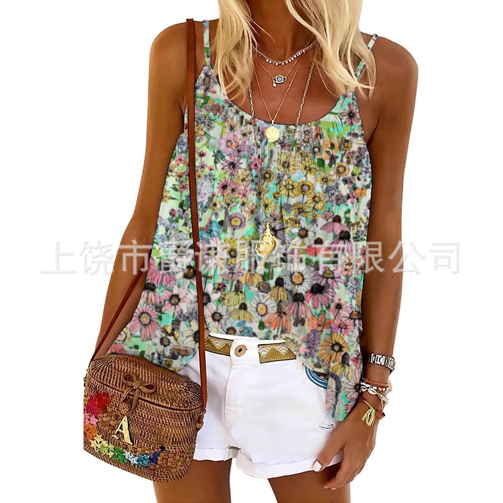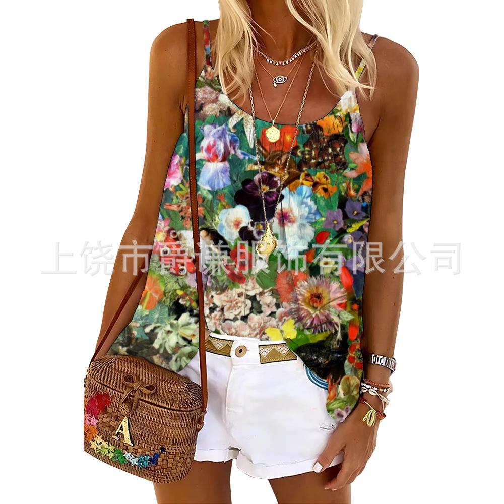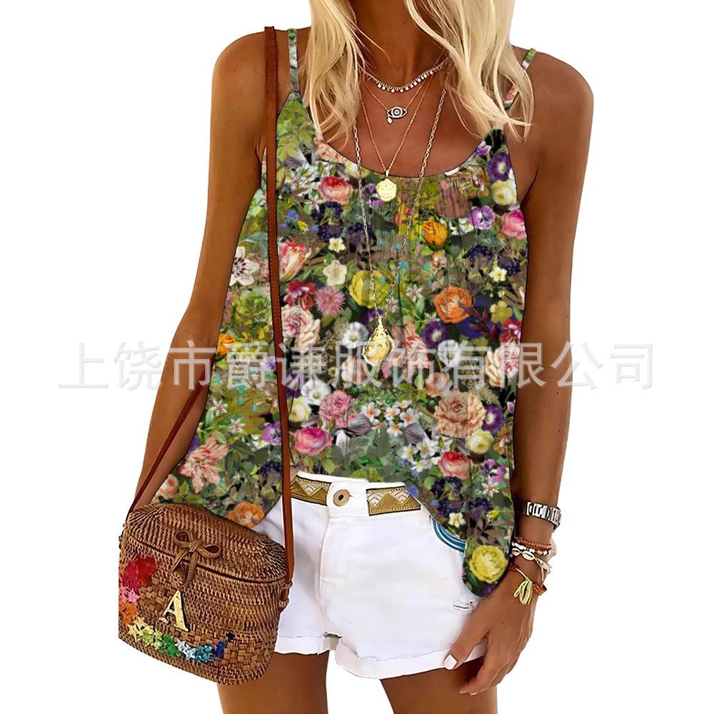 Europeu e americano cross-border verão novo feminino floral impressão feminino solto sexy moda exterior desgaste interior camisola
