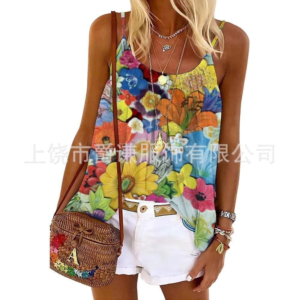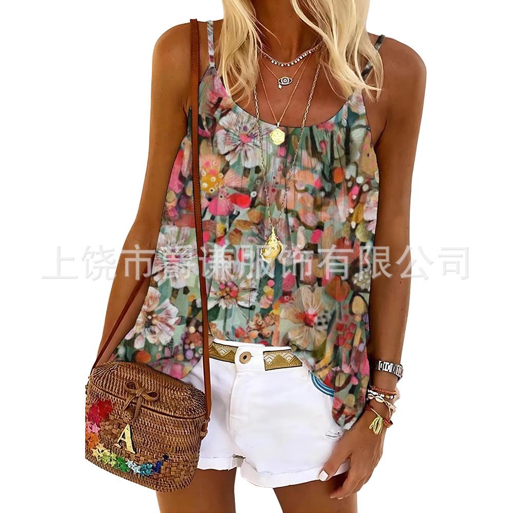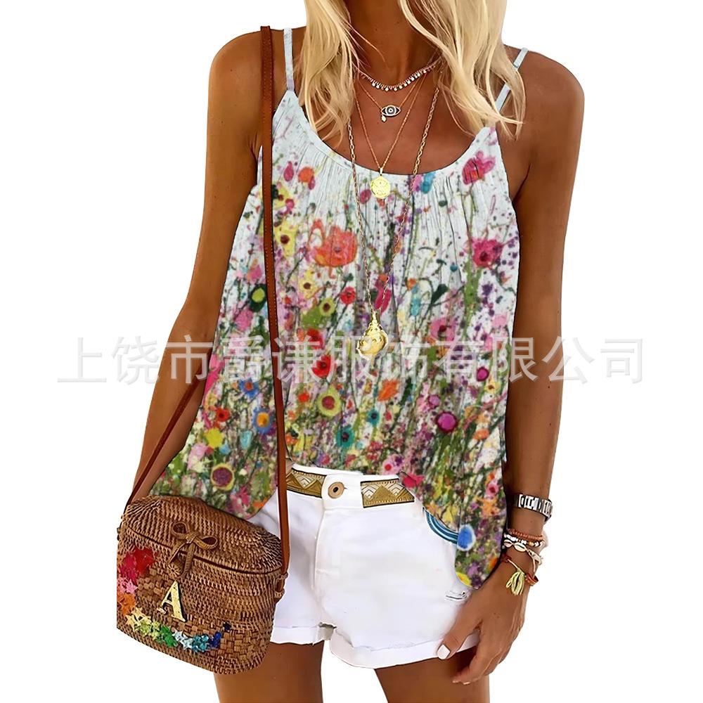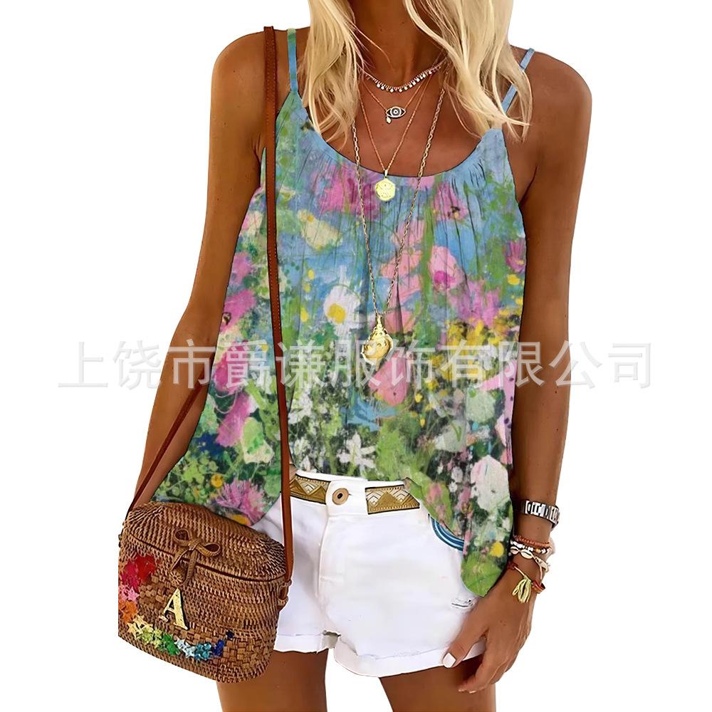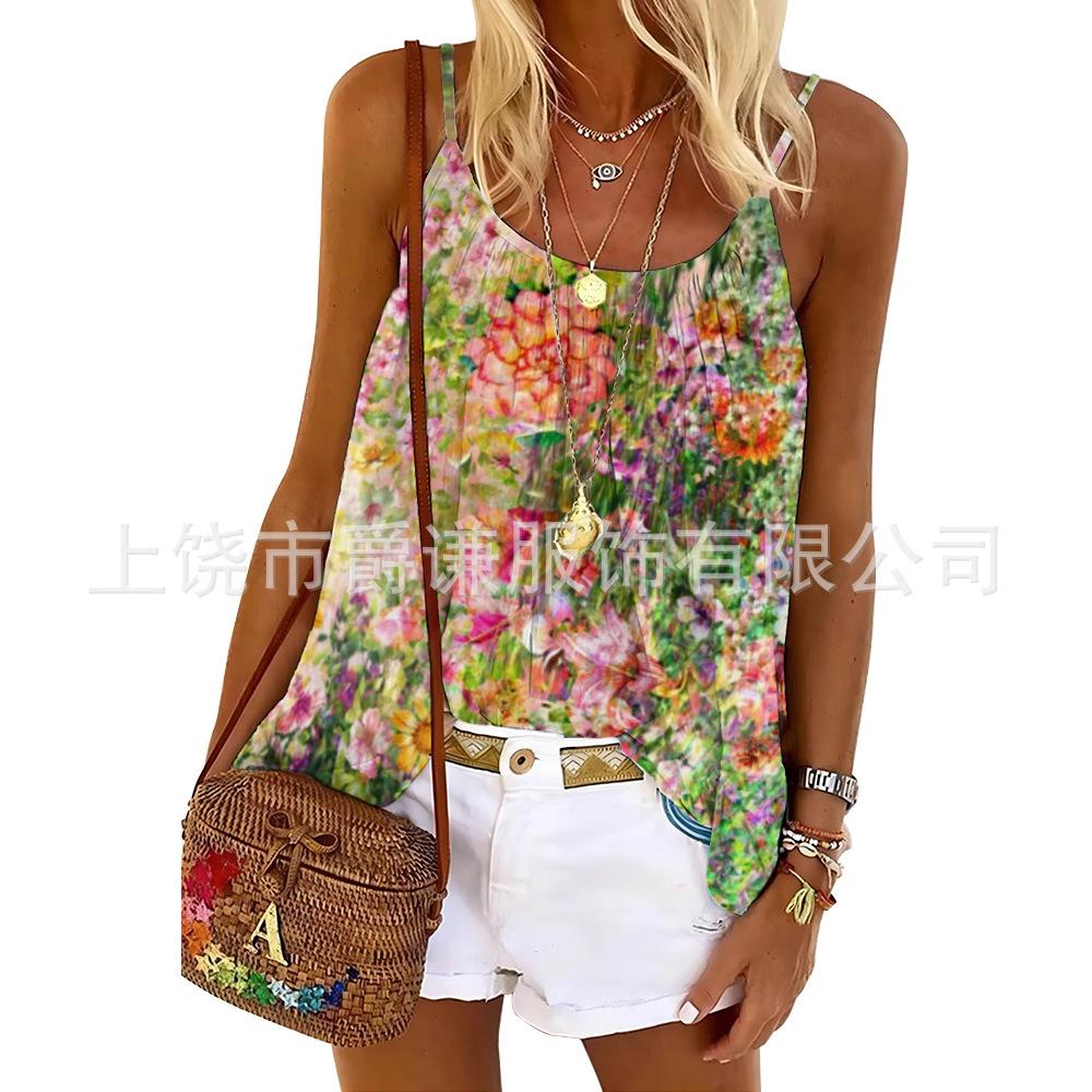 Europeu e americano cross-border verão novo feminino floral impressão feminino solto sexy moda exterior desgaste interior camisola