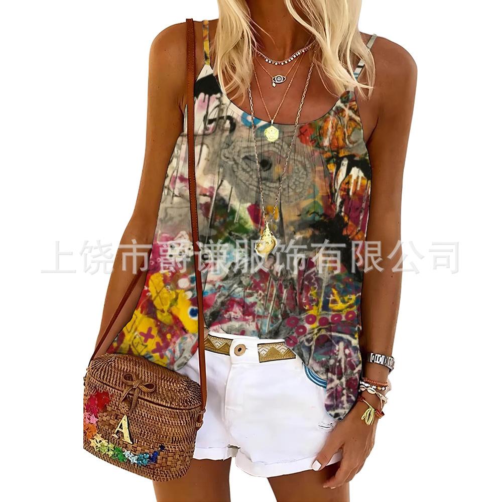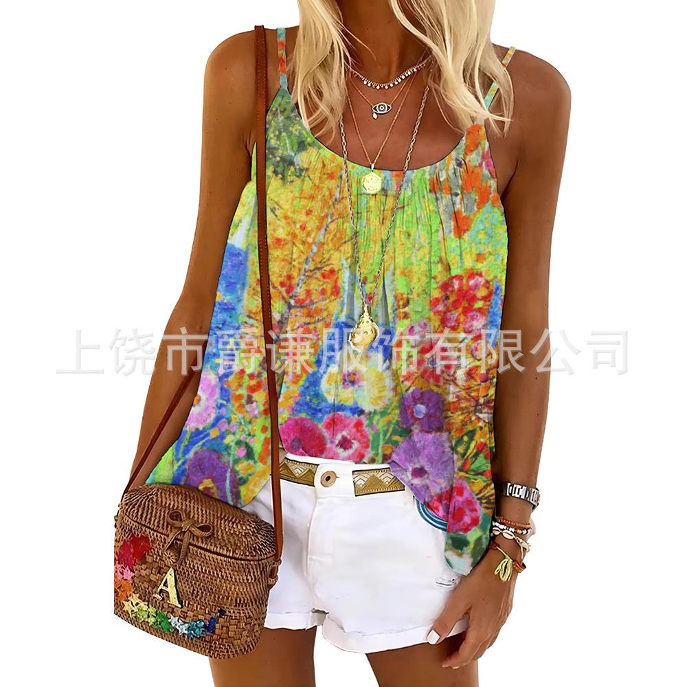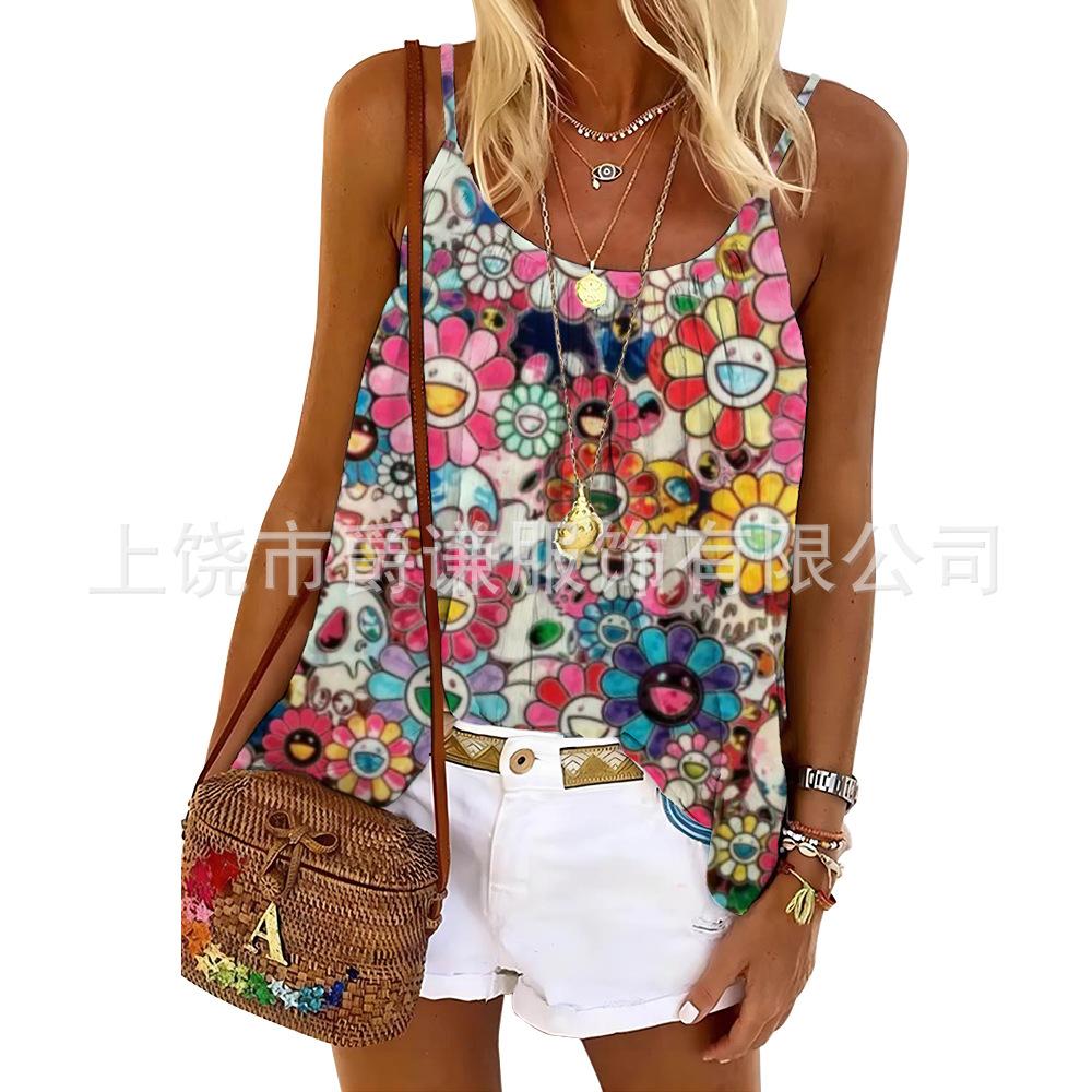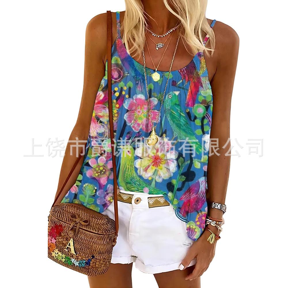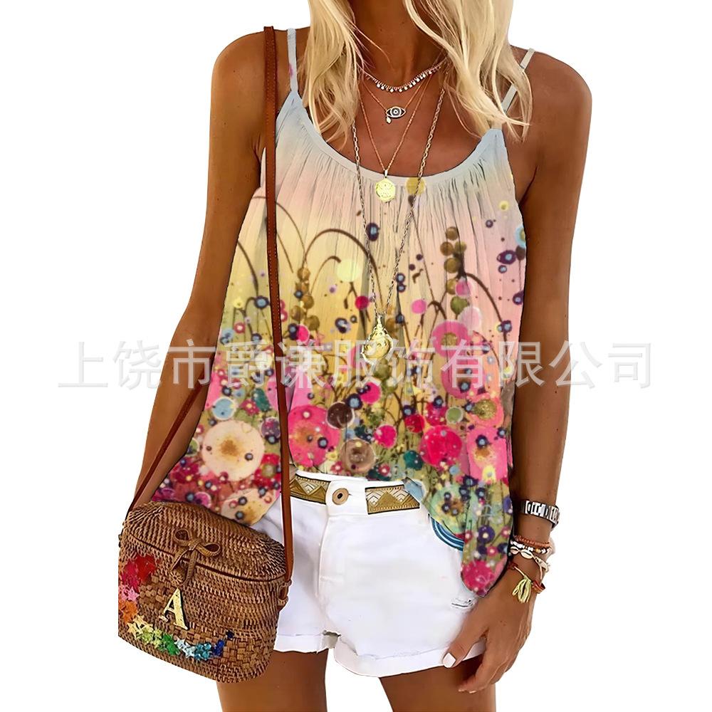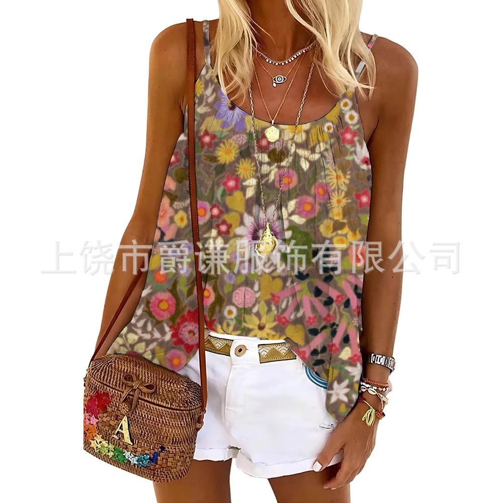 Europeu e americano cross-border verão novo feminino floral impressão feminino solto sexy moda exterior desgaste interior camisola