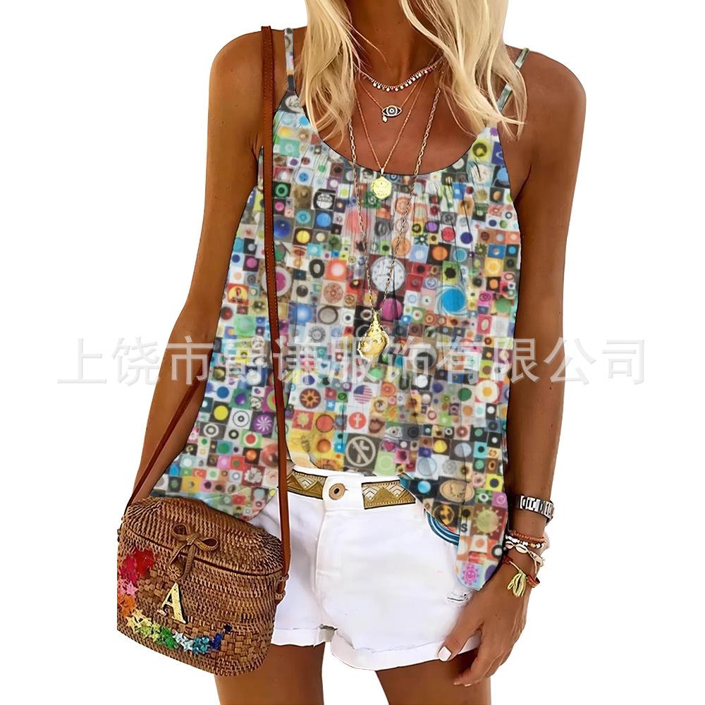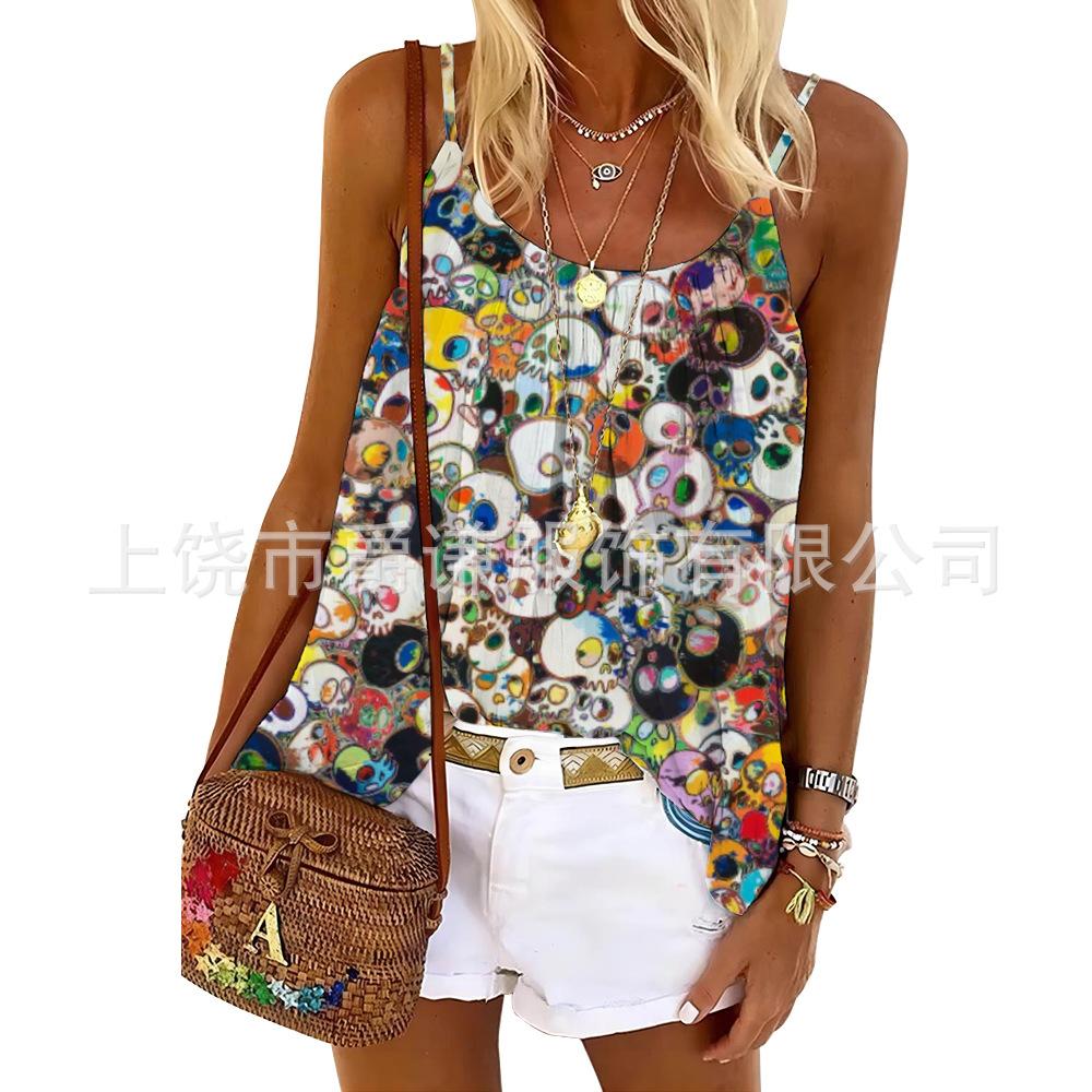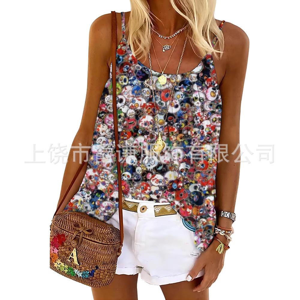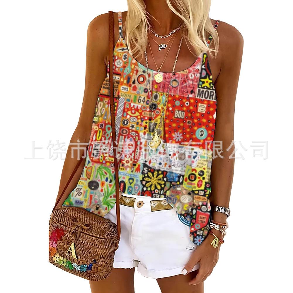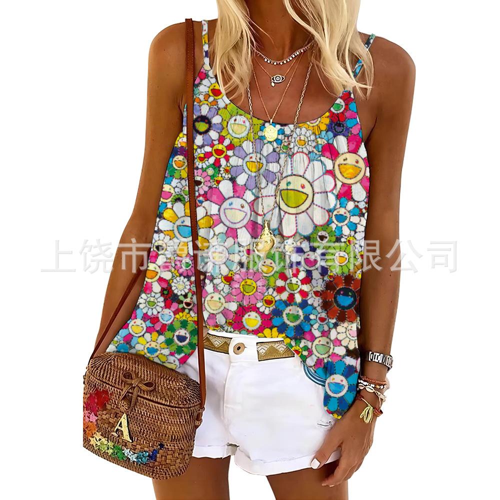 Europeu e americano cross-border verão novo feminino floral impressão feminino solto sexy moda exterior desgaste interior camisola