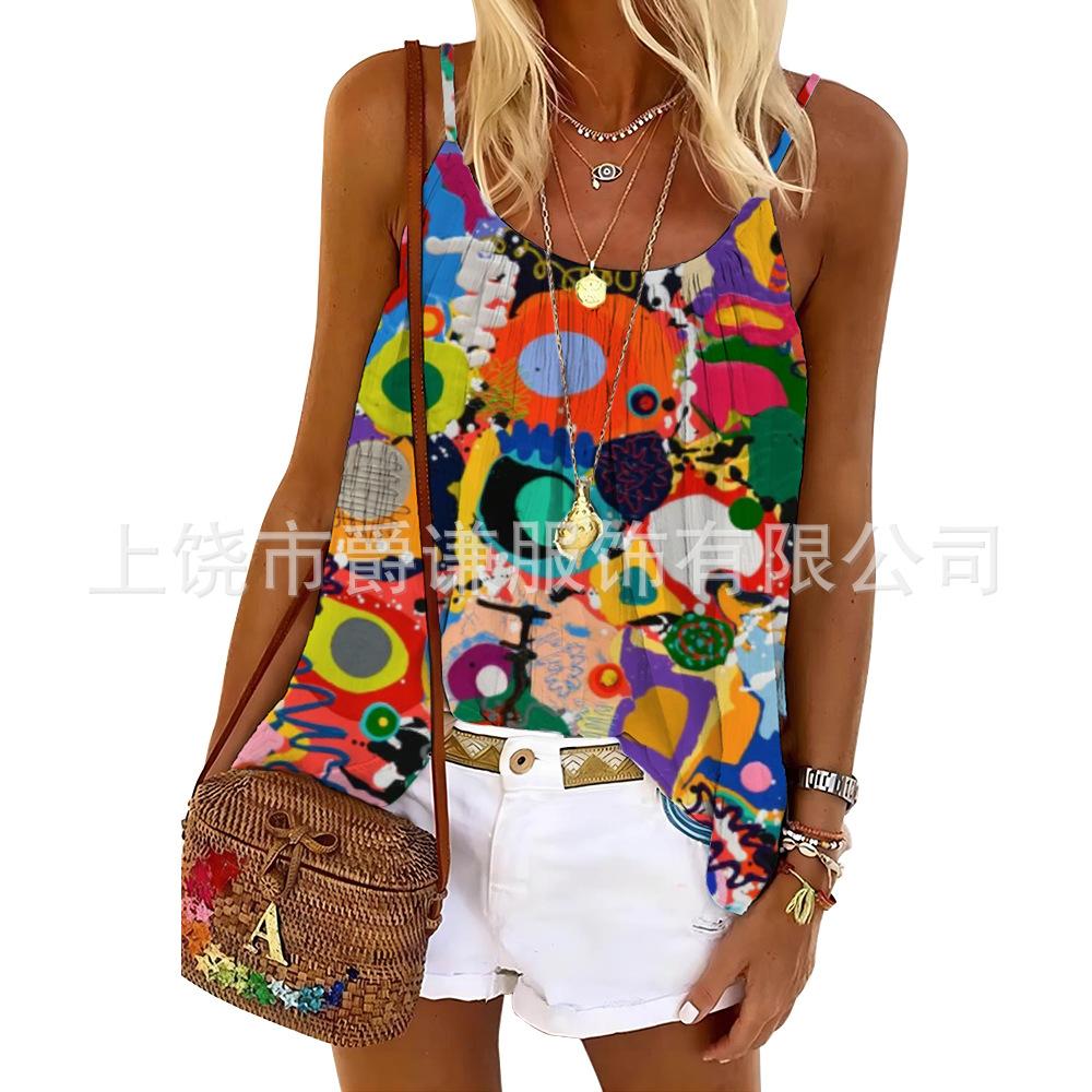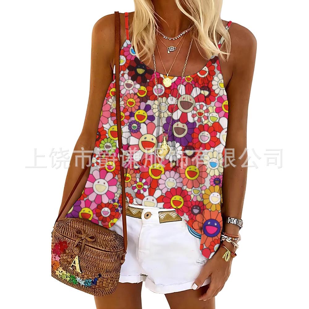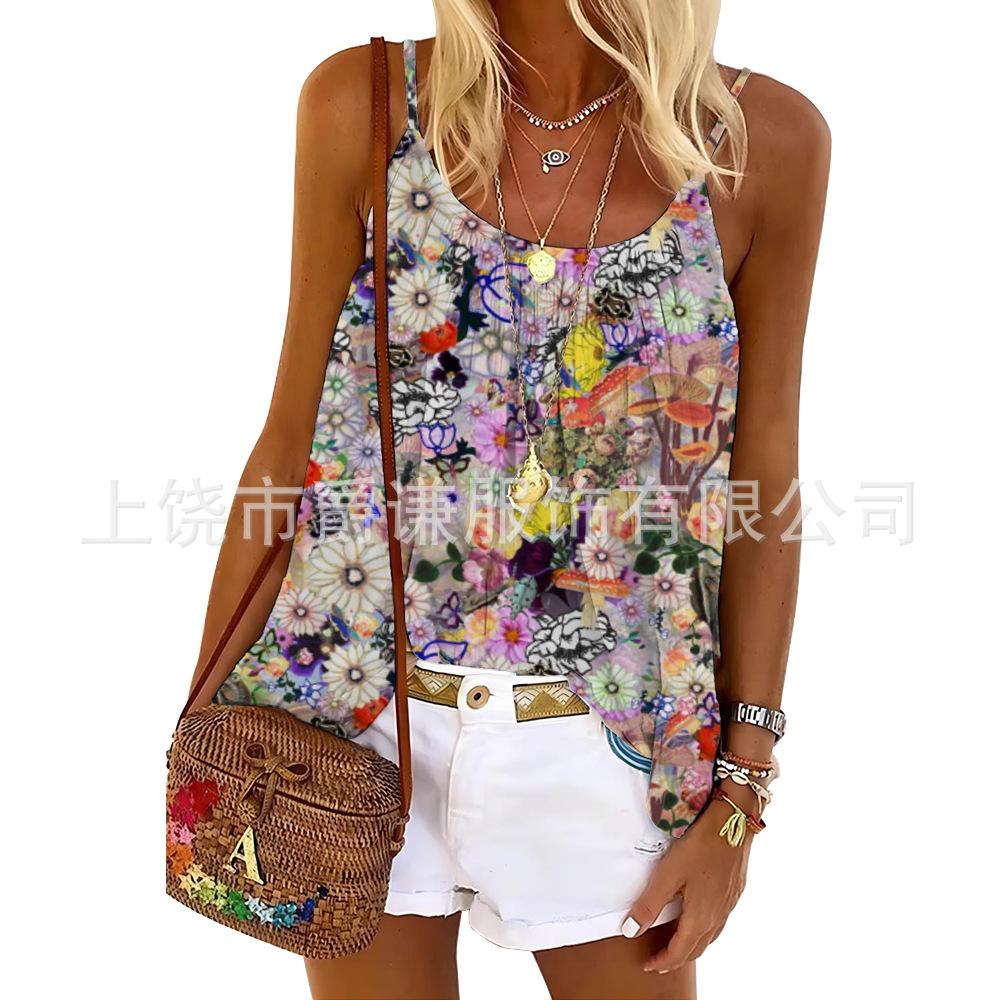 Compre Europeu e americano cross-border verão novo feminino floral impressão feminino solto sexy moda exterior desgaste interior camisola no atacado no Joom.pro