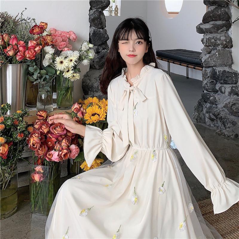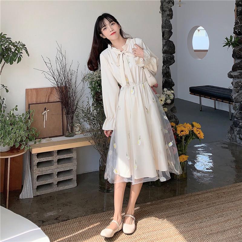 Vestido Super Fada Outono 2025 Estilo Faculdade Floresta Francesa Emagrecimento Cintura Doce Manga Longa Estudante Saia Longa