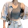 Camisola de Algodão Feminina Verão 2025 Estilo Curto Camada Interna Verão Roupa Externa Umbigo à Mostra Popular Sexy Sem Mangas Estudante