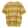 Verão 2025 Novo Tricô de Algodão Puro Camiseta Feminina de Manga Curta com Gola Redonda Listrada Elegante Versátil Tricotada para Usar por Baixo