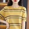 Compre Verão 2025 Novo Tricô de Algodão Puro Camiseta Feminina de Manga Curta com Gola Redonda Listrada Elegante Versátil Tricotada para Usar por Baixo no atacado no Joom.pro