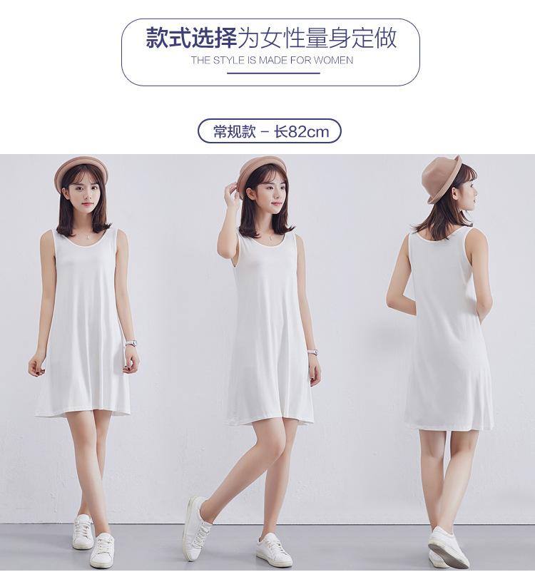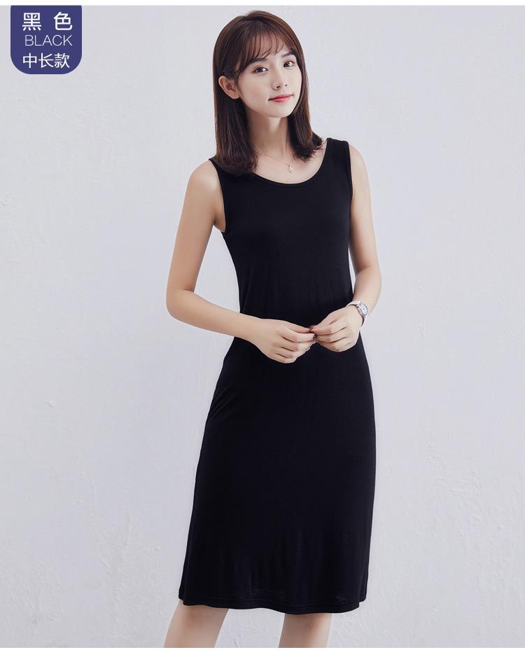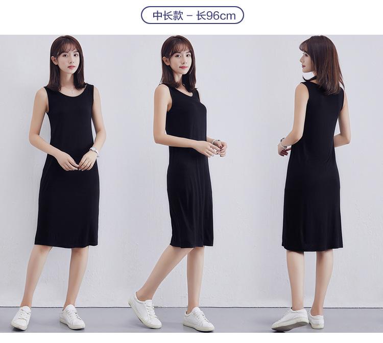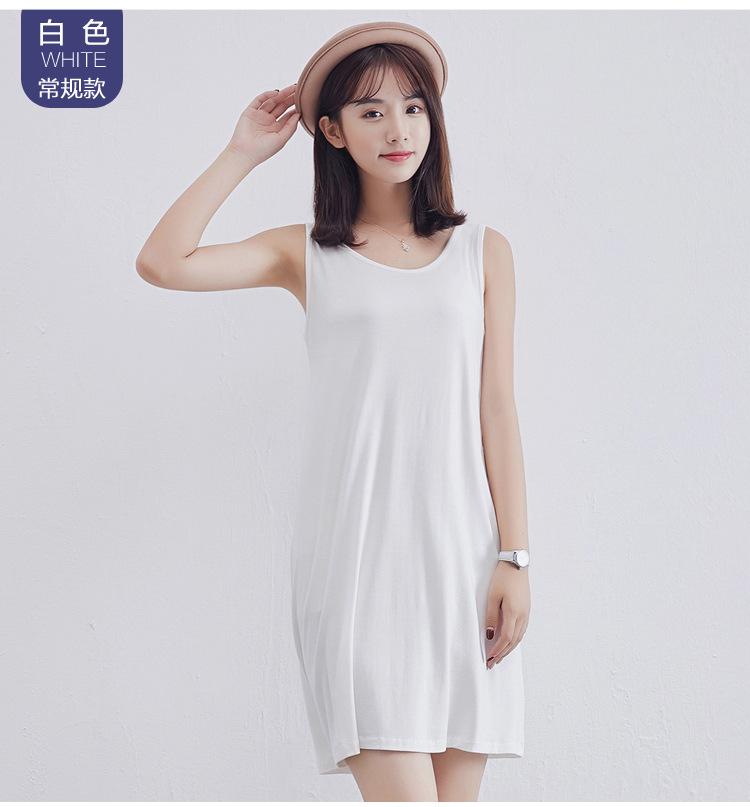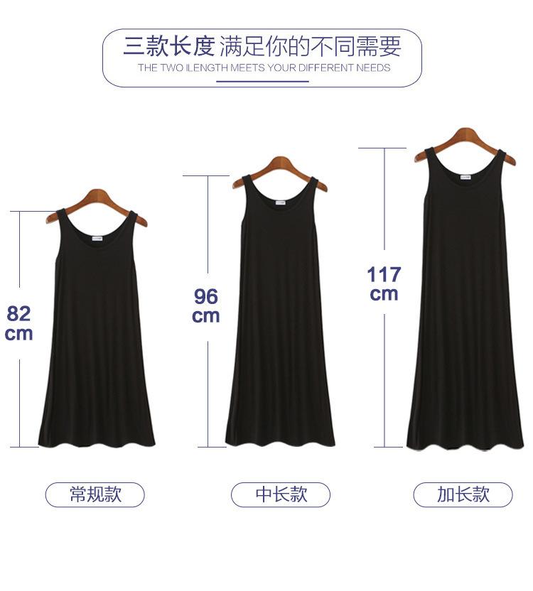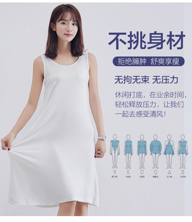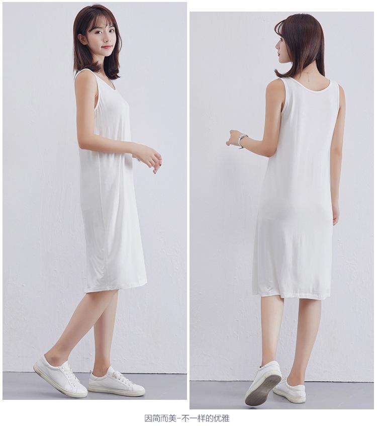 Camisola modal feminina de comprimento médio com alças ajustáveis ​​para o verão, forro anti-exposição, saia de fundo