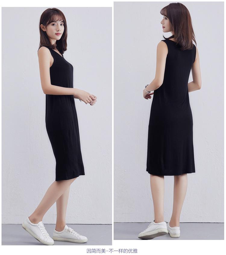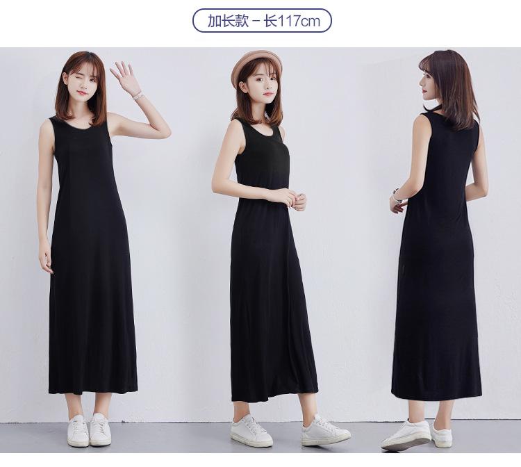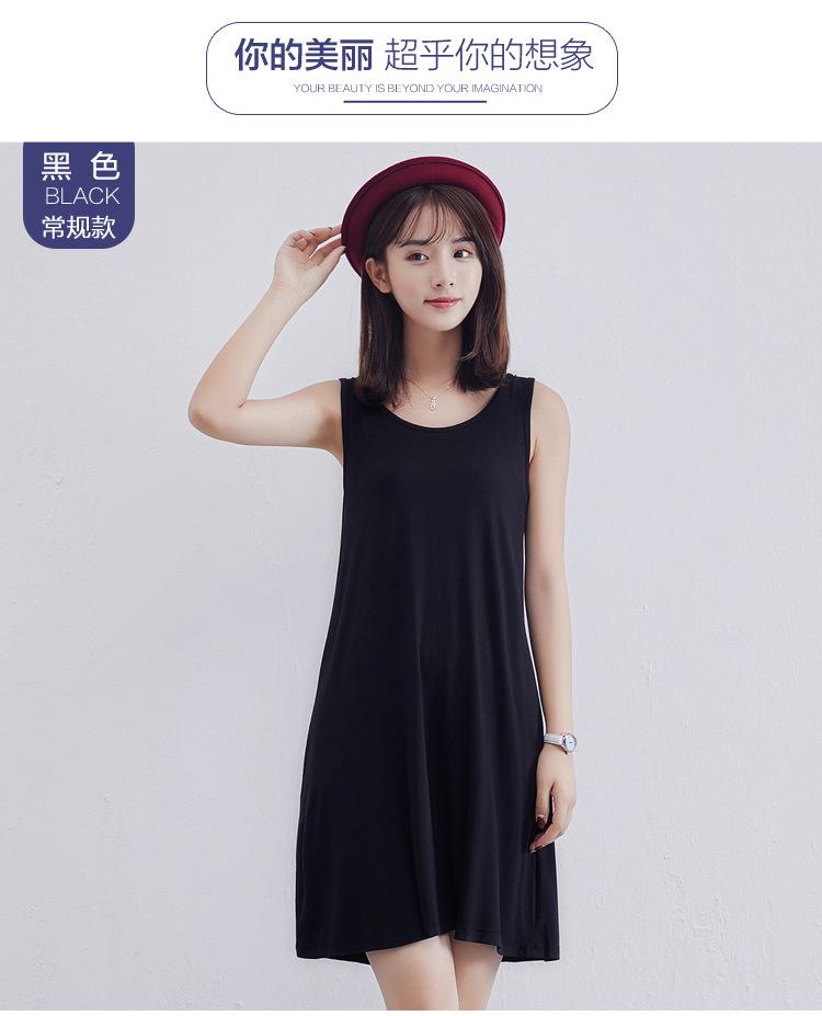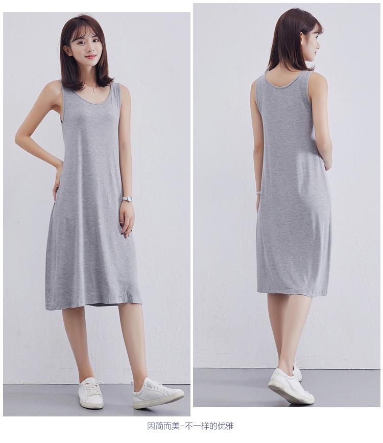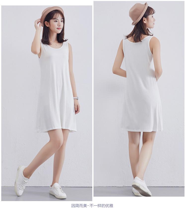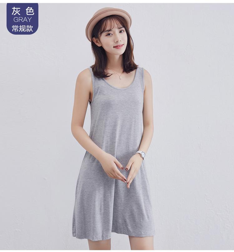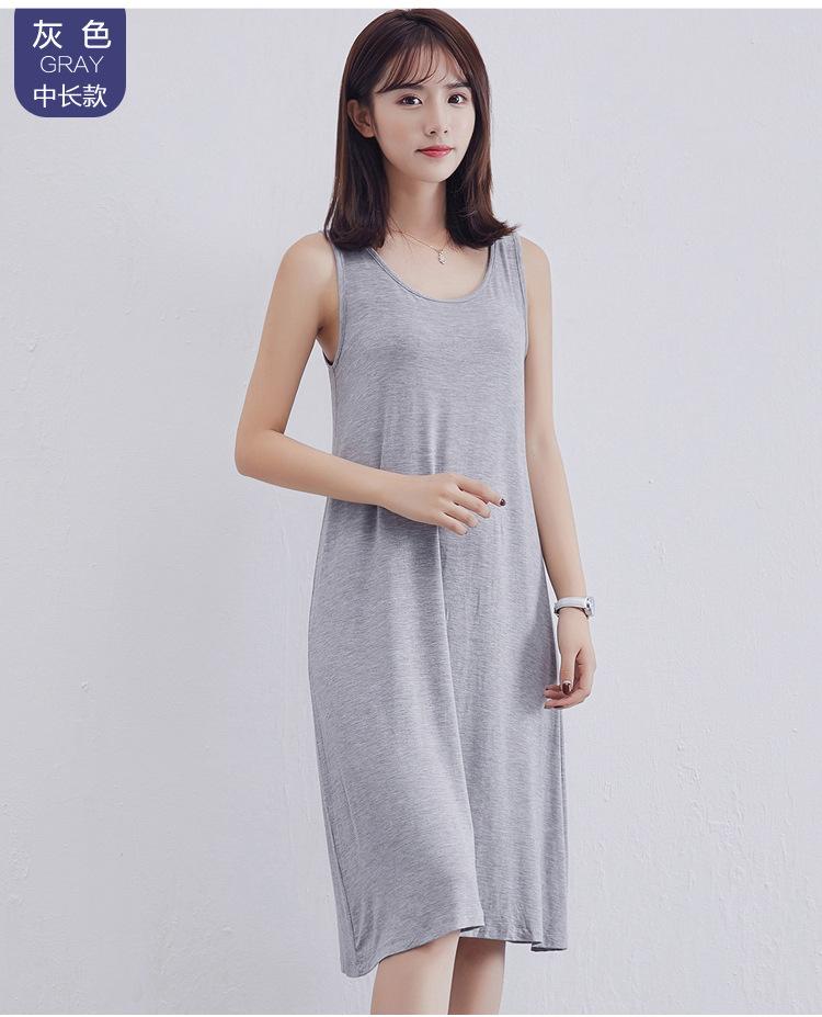Camisola modal feminina de comprimento médio com alças ajustáveis ​​para o verão, forro anti-exposição, saia de fundo