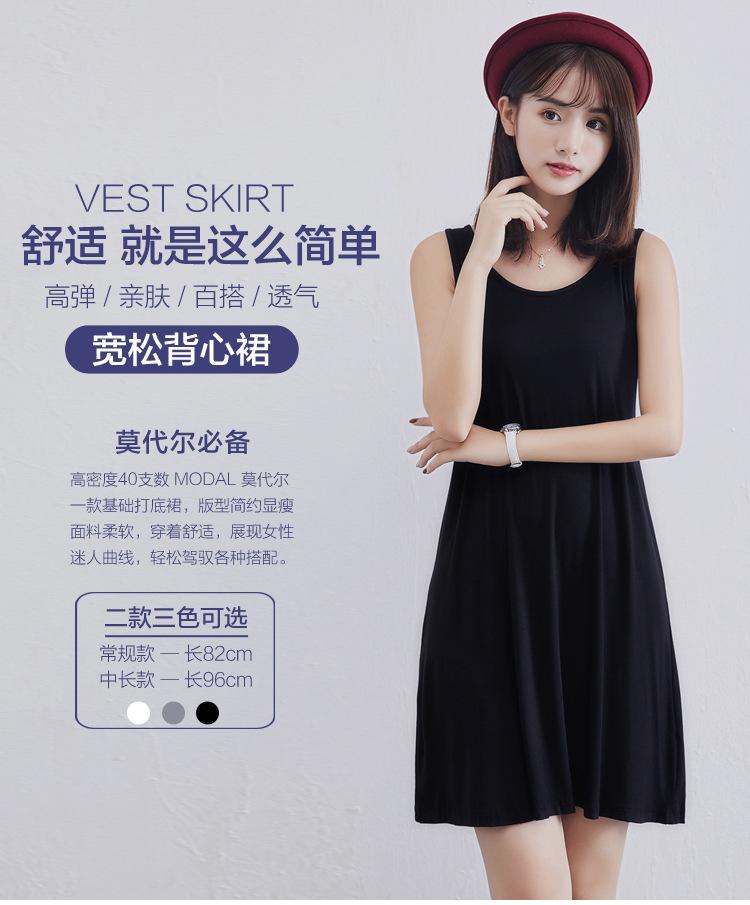 Saia suspensa de fundo modal de verão para mulheres, desgaste interno médio e longo, saia de tamanho grande, vestido de verão de alta qualidade para mulheres