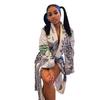 Comércio exterior transfronteiriço europeu e americano novas roupas femininas Amazon desejo Novo vestido de manga comprida com decote em V vestido midi estampado
