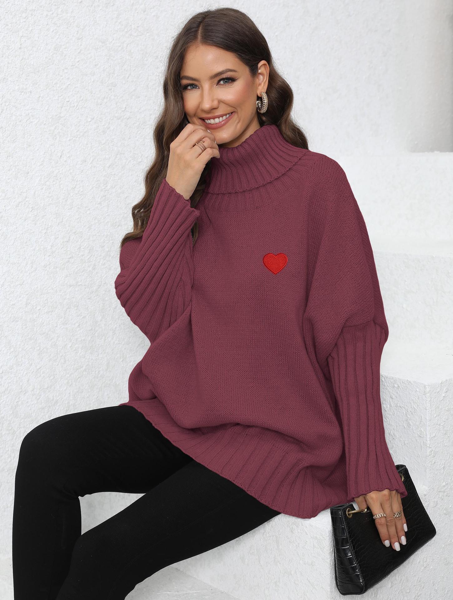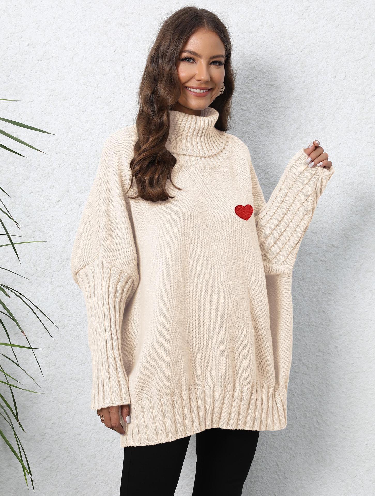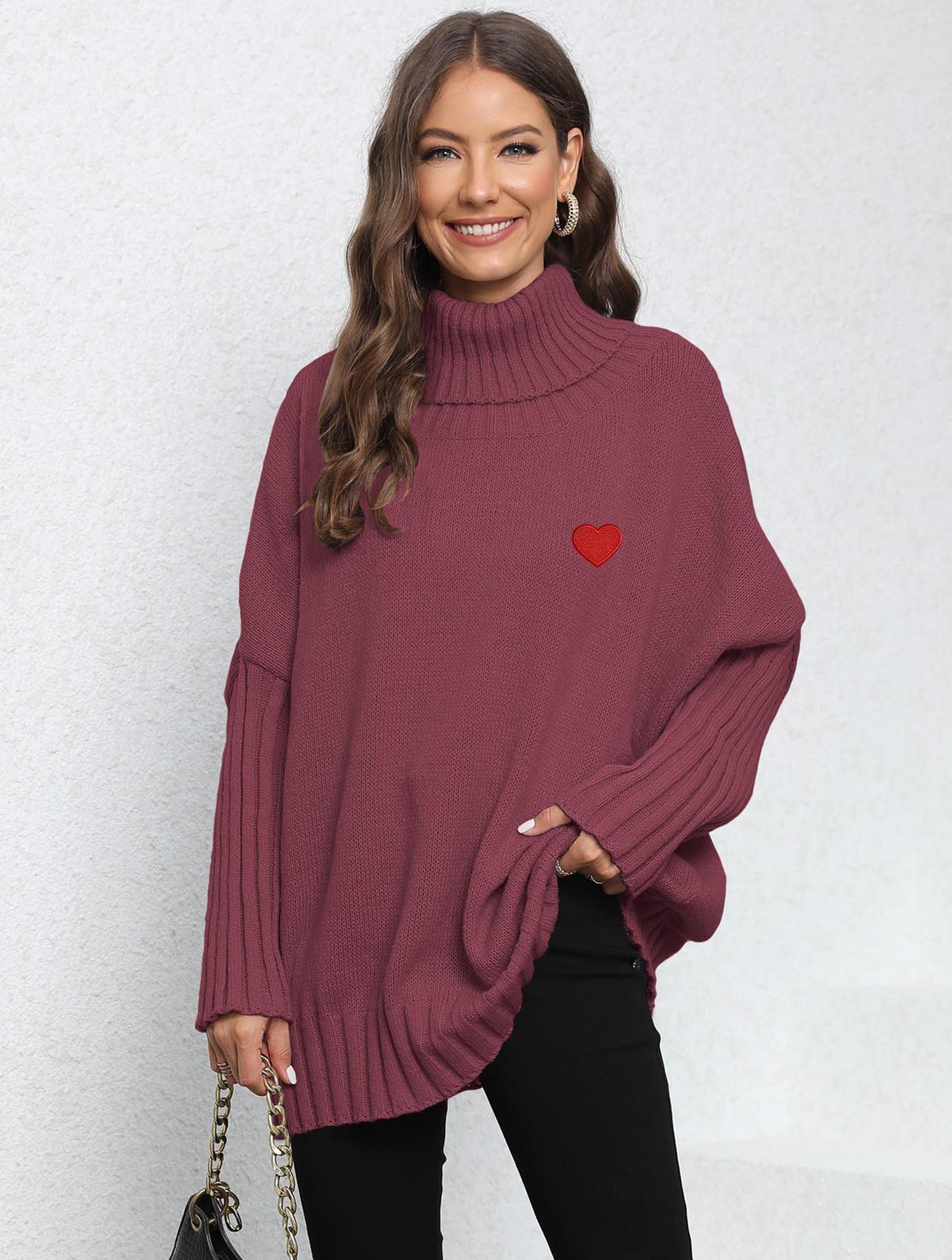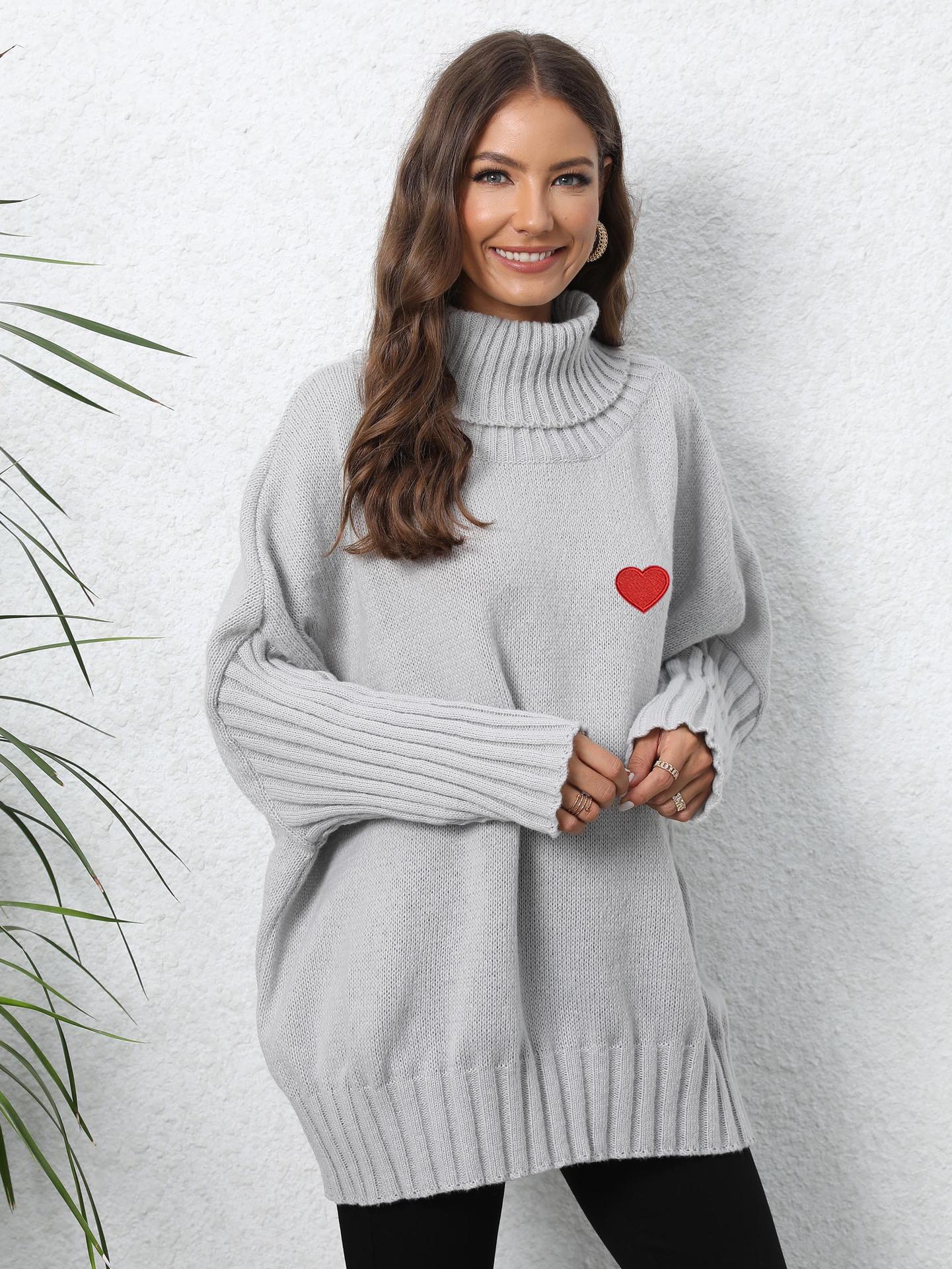 Compre Tops Pulôver Femininos Roupa Europeia e Americana Transfronteiriça Tricotado Cor Sólida Gola Alta Lapela Solto Tecido Adesivo Love Suéter no atacado no Joom.pro