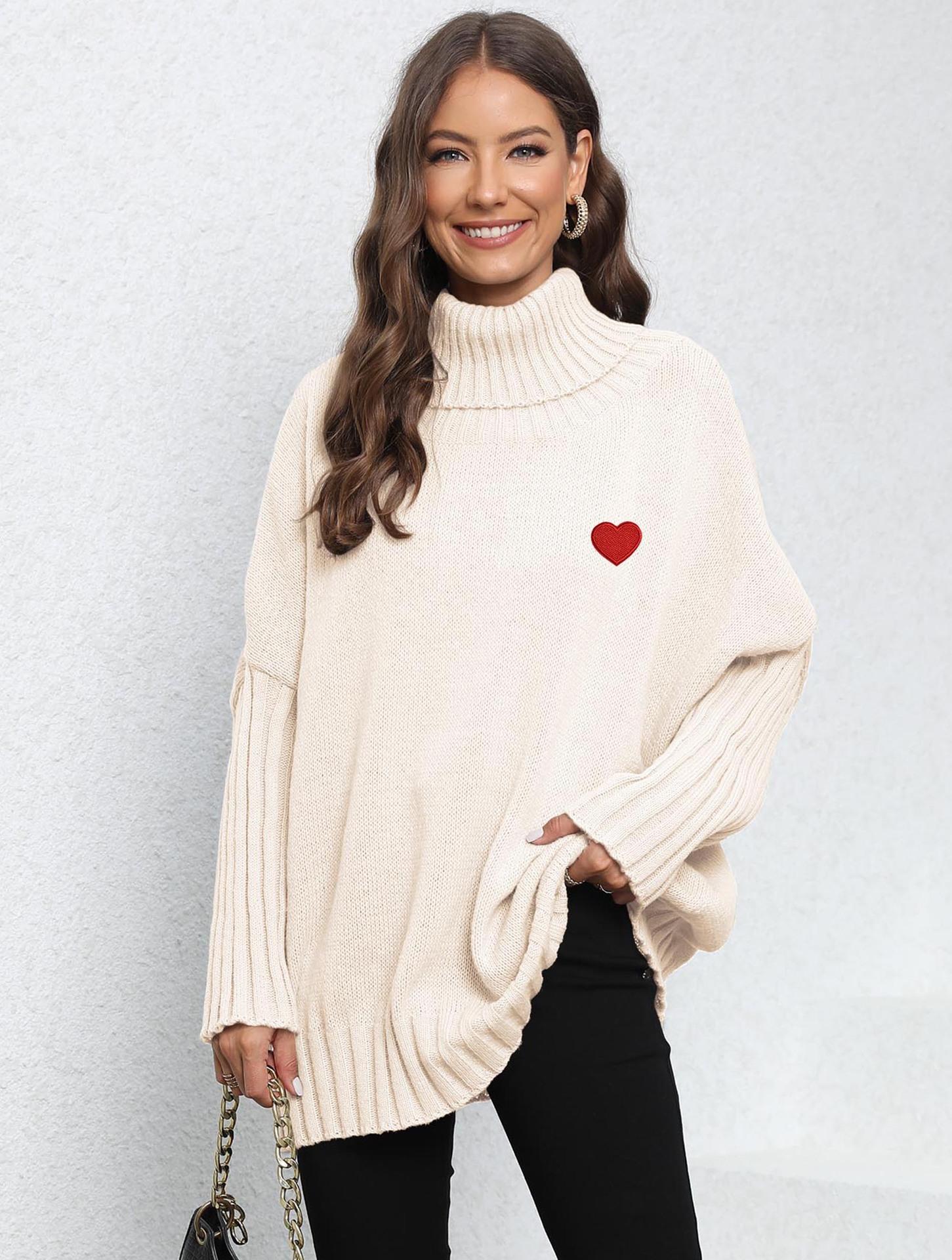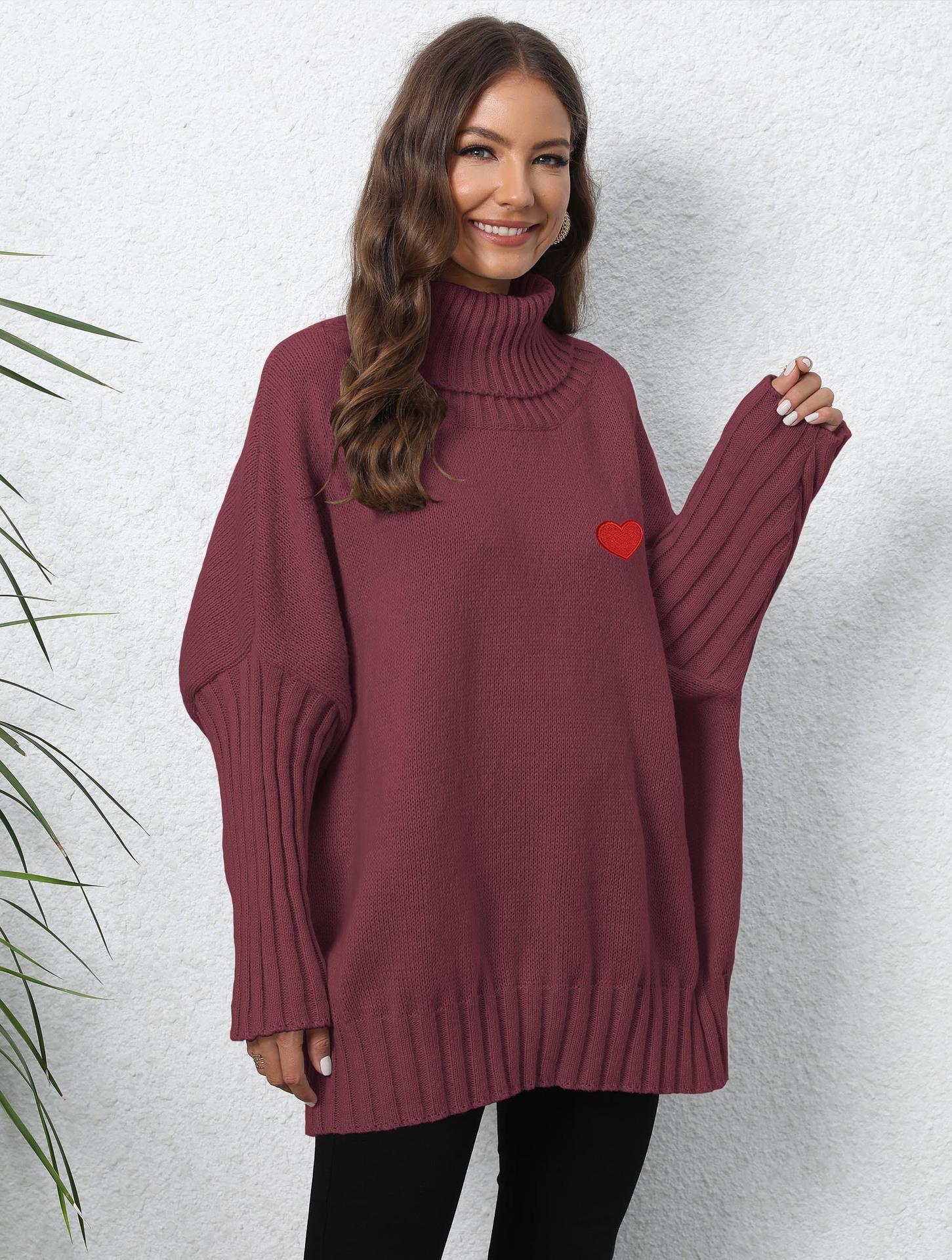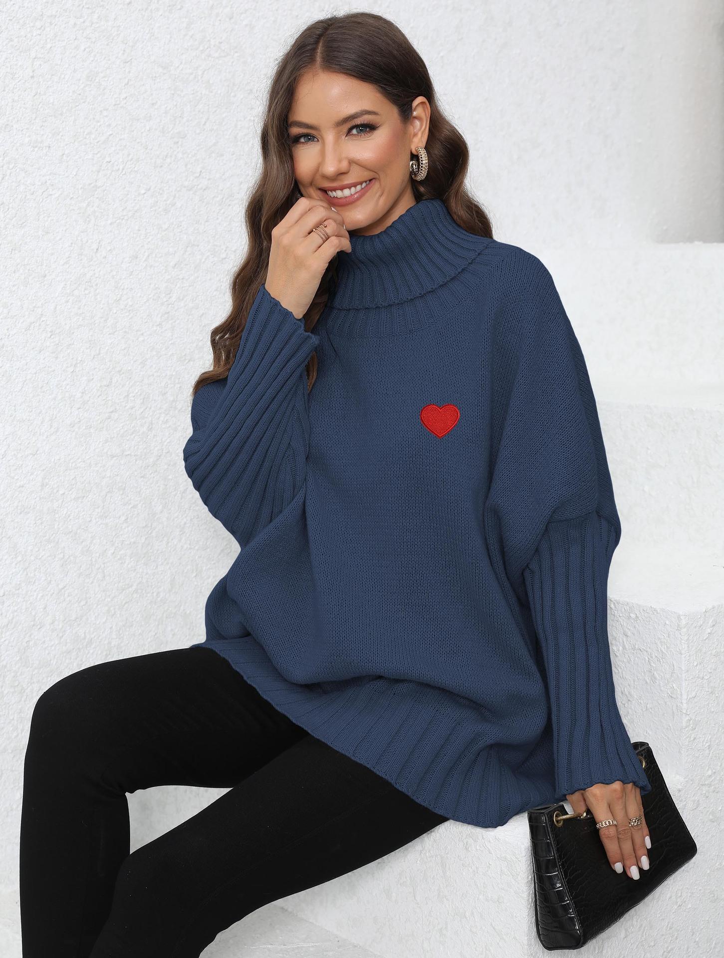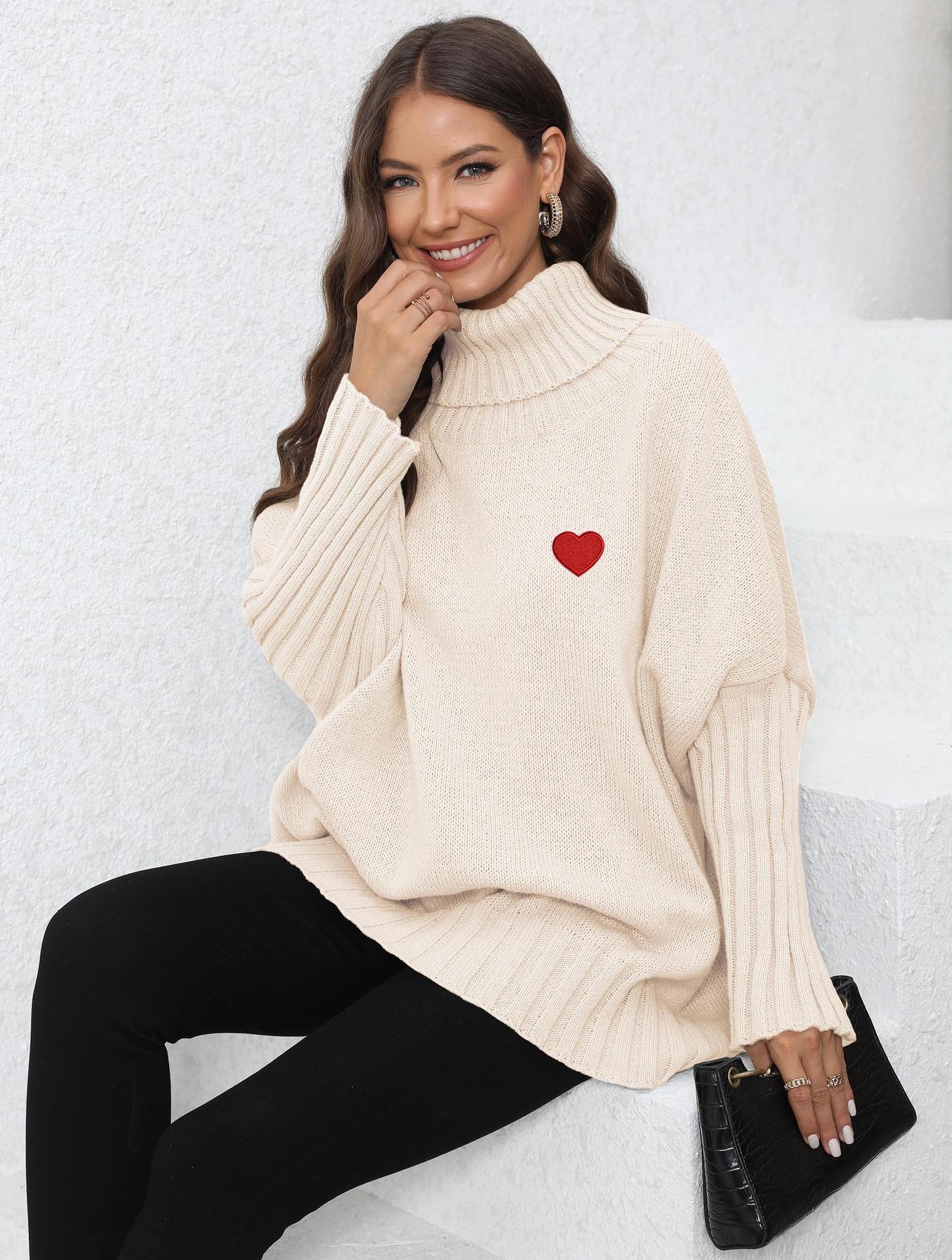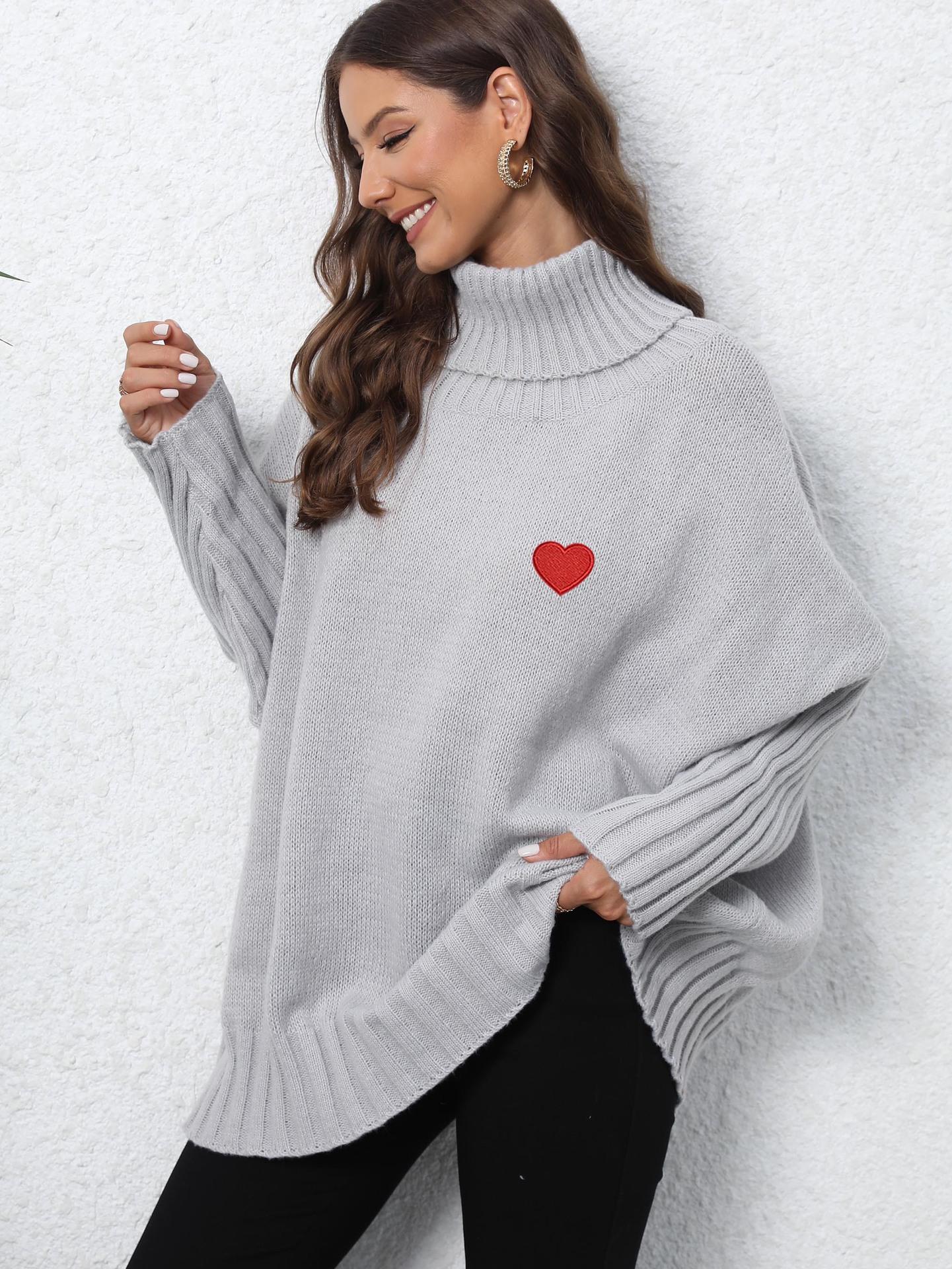Compre Tops Pulôver Femininos Roupa Europeia e Americana Transfronteiriça Tricotado Cor Sólida Gola Alta Lapela Solto Tecido Adesivo Love Suéter no atacado no Joom.pro