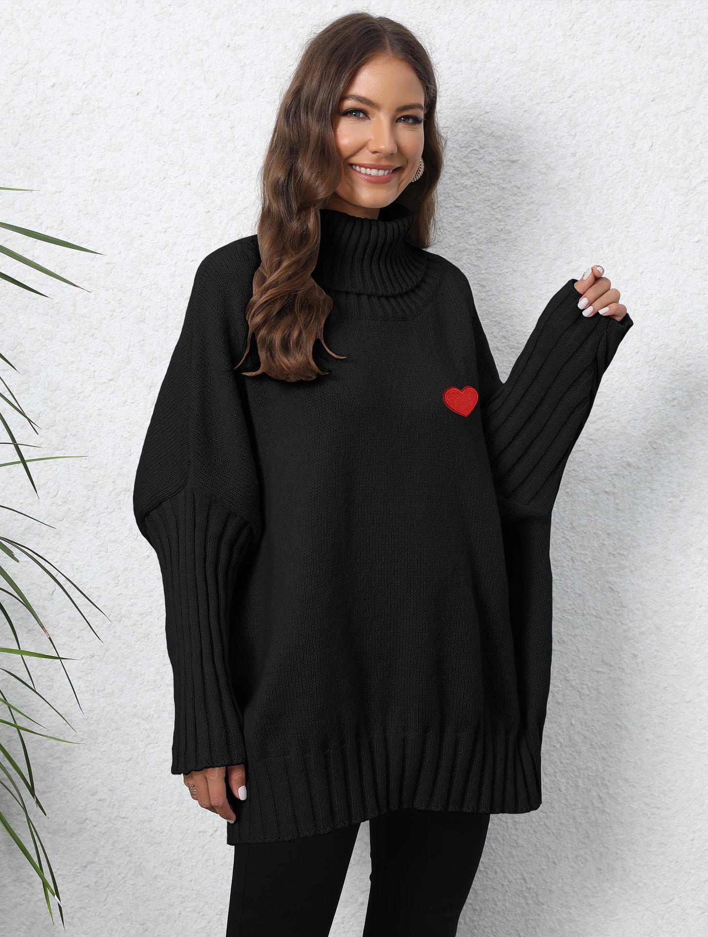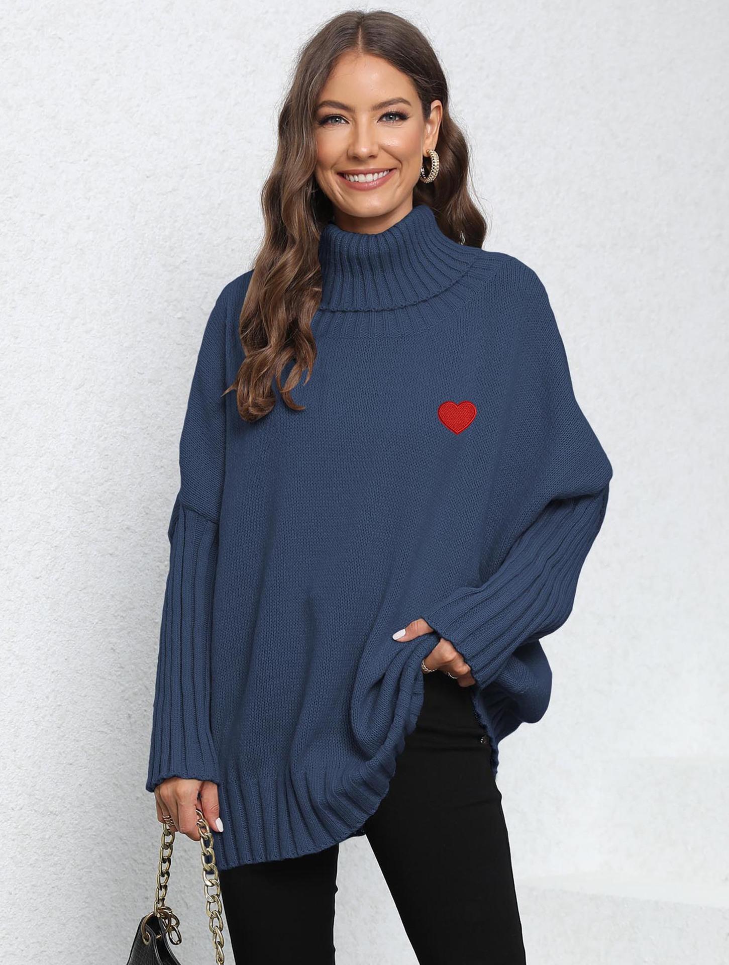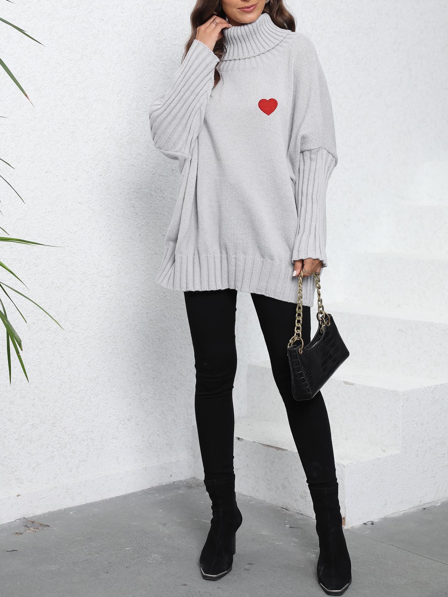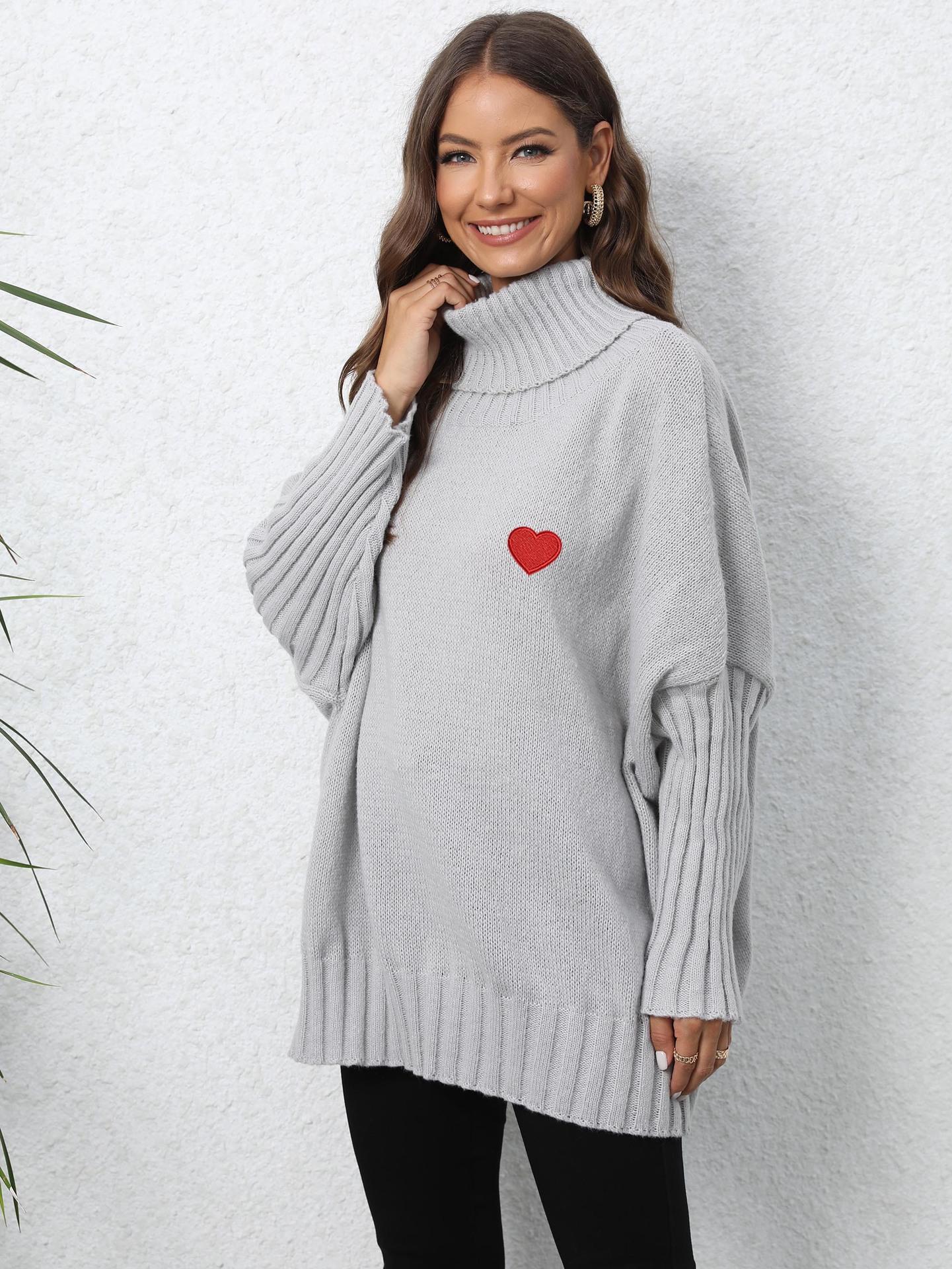 Compre Tops Pulôver Femininos Roupa Europeia e Americana Transfronteiriça Tricotado Cor Sólida Gola Alta Lapela Solto Tecido Adesivo Love Suéter no atacado no Joom.pro