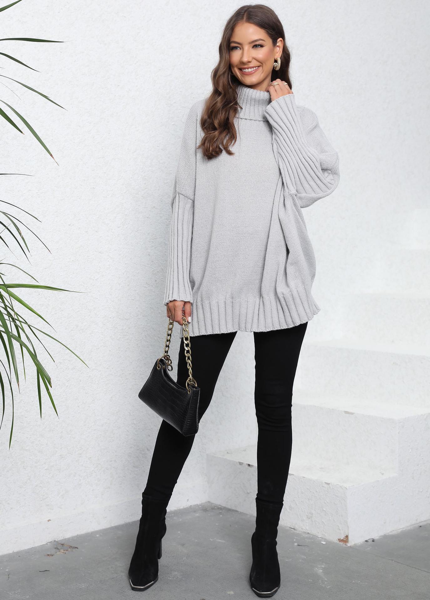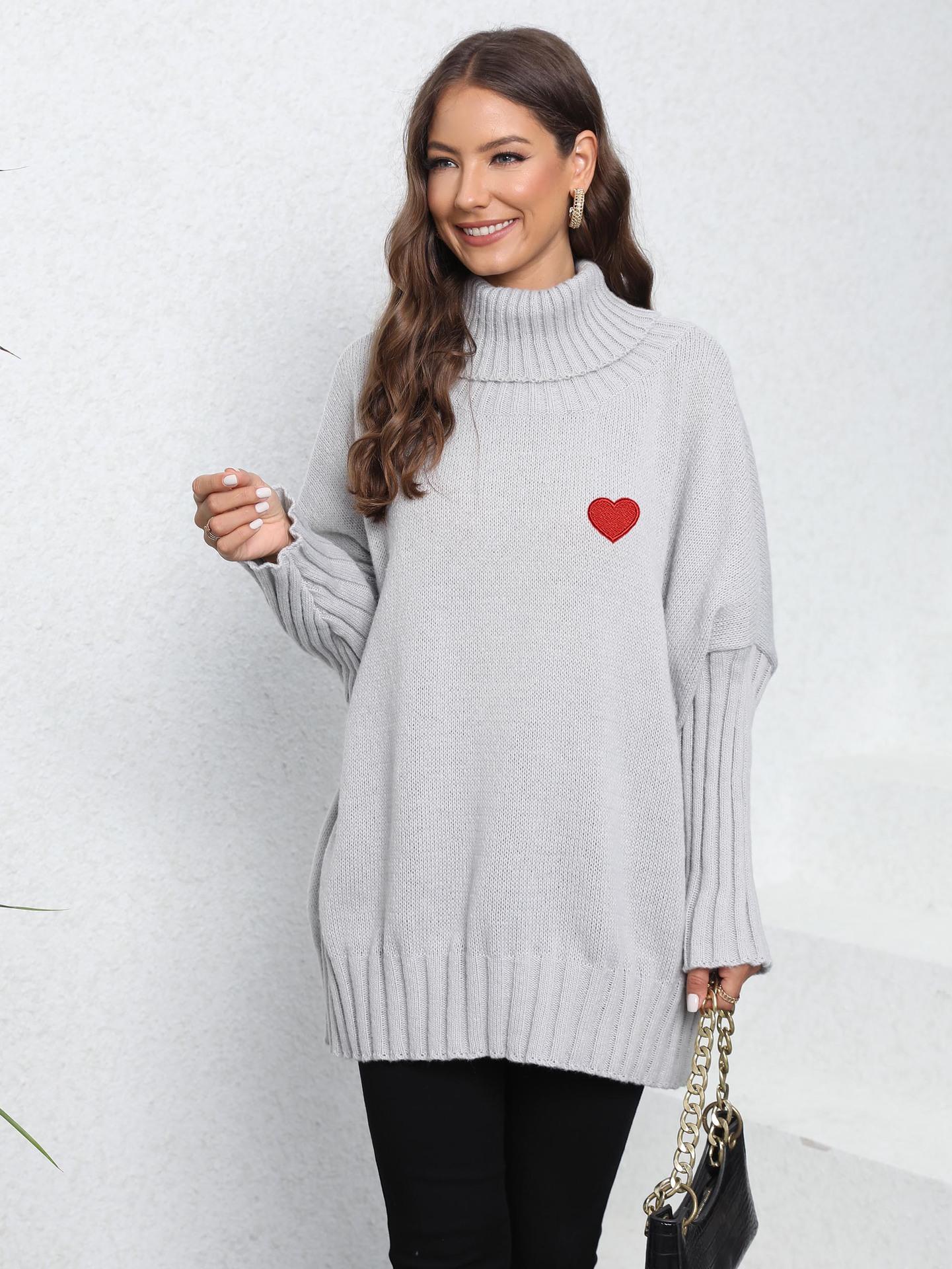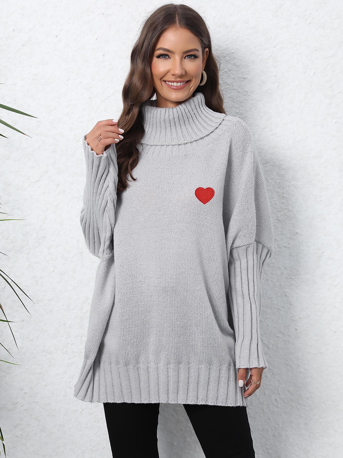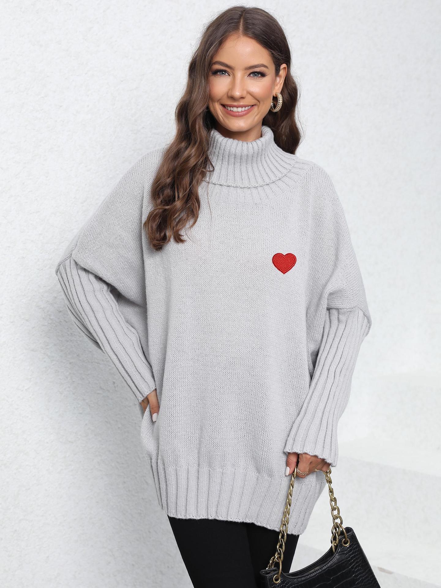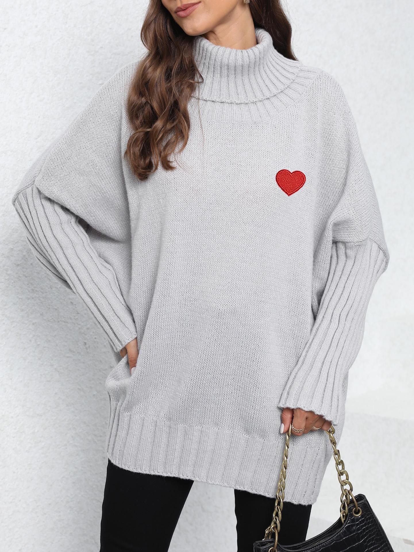 Compre Tops Pulôver Femininos Roupa Europeia e Americana Transfronteiriça Tricotado Cor Sólida Gola Alta Lapela Solto Tecido Adesivo Love Suéter no atacado no Joom.pro