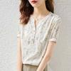 Roupas de Verão Novas 2024, Blusas de Chiffon Florais de Manga Curta com Decote V, Leves e Respiráveis para Mulheres, Roupas Slim e Versáteis