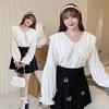 Camisa Feminina Plus Size Runqi Chegada Nova Outono para Senhoras Plus Size, Botão Frontal Acabamento em Renda Gola Grande Cor Sólida Camisa N7766