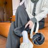 Calças largas de outono e inverno para mulheres 2024 forrado de lã novo emagrecimento de cintura alta drapeado solto pequeno reto casual esfregando calças