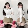 Jk uniforme universitário estilo jk uniforme usar slim fit cintura camisa apertada feminina primavera e outono saia plissada terno