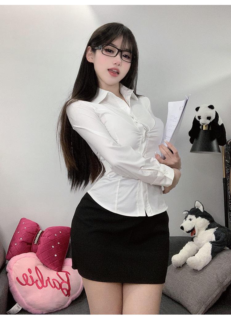 Short sleeve shirt, Long sleeve shirt, Black skirt, Khaki short skirt, Dark gray short skirt