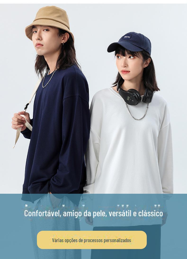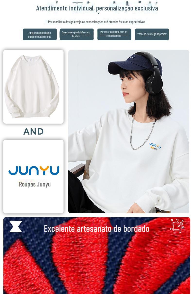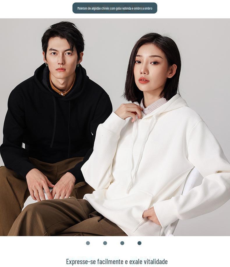 Primavera e Outono com capuz pescoço redondo manga comprida manga drop-shoulder suéter personalizado solto roupas casuais classe roupas publicidade camisa estampada logotipo