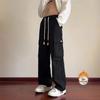 Calças Casuais Masculinas de Outono e Inverno Forradas de Moda Folgadas plus size Perna Preta Calças Longas para Homens