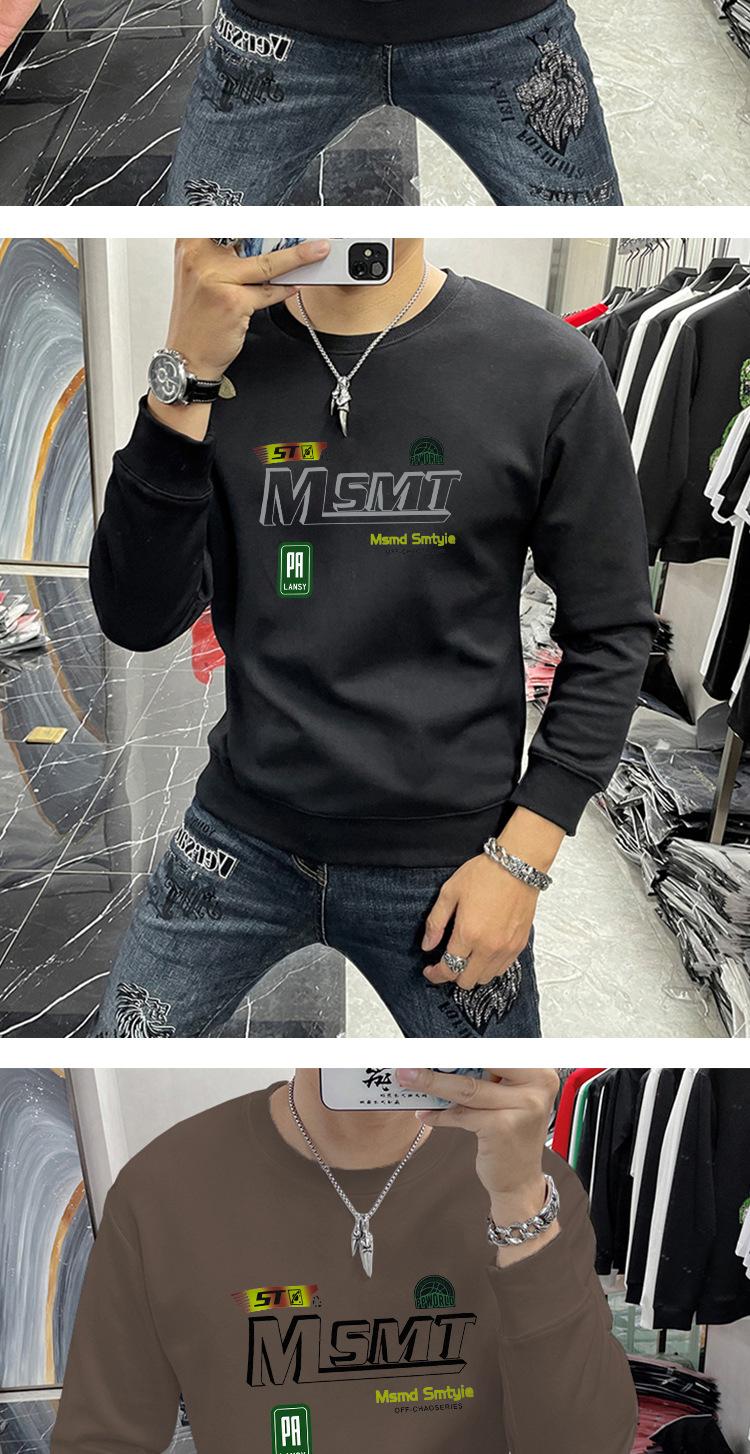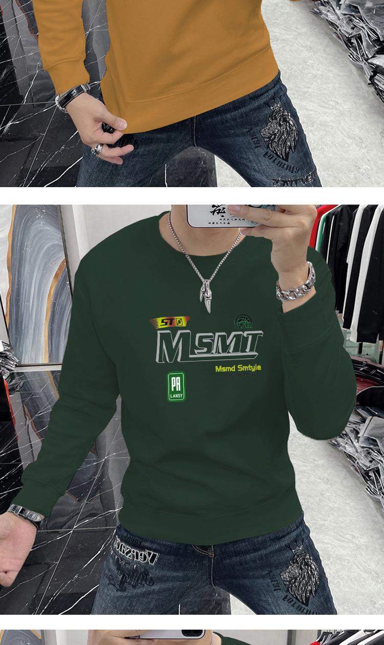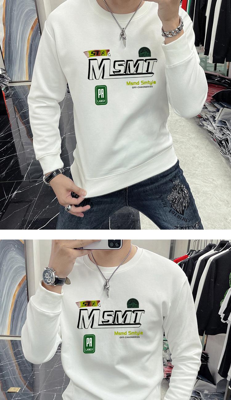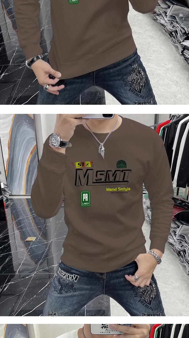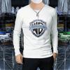 Suéter masculino elegante coreano-estilo slim-fit pullover manga comprida top gola redonda carta impressa roupa interior moda masculina T-shirt