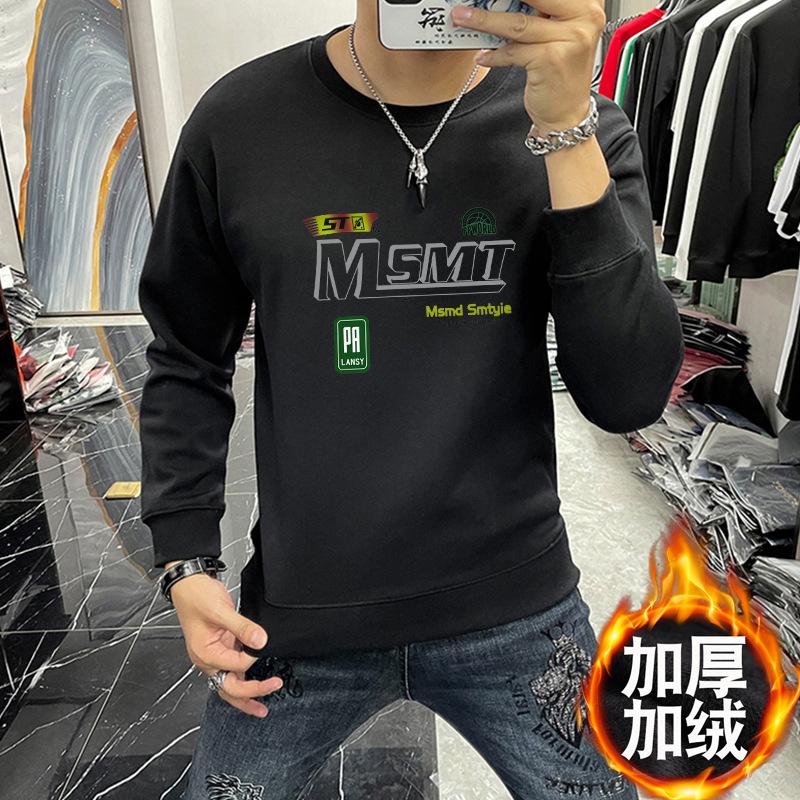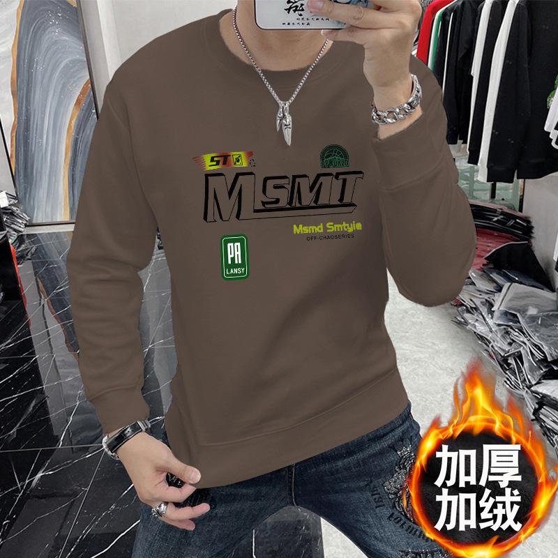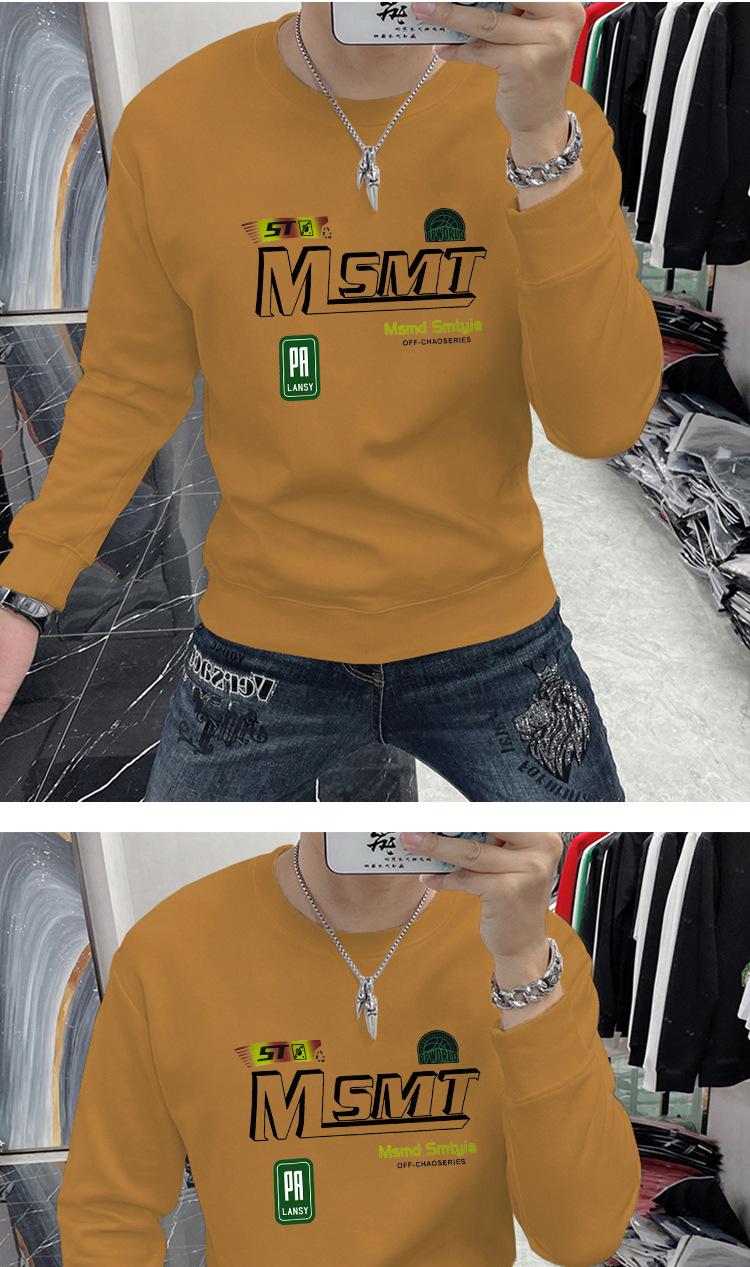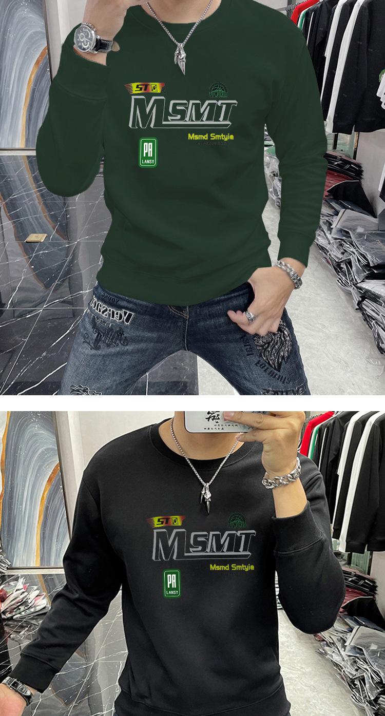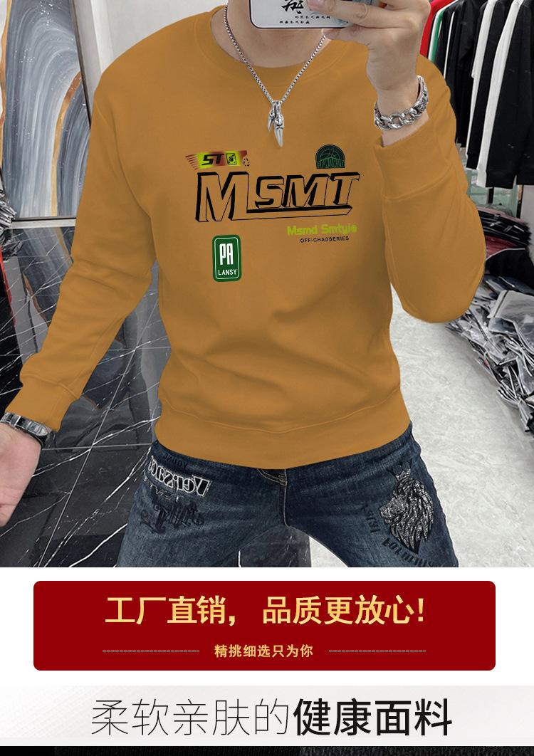 Suéter masculino elegante coreano-estilo slim-fit pullover manga comprida top gola redonda carta impressa roupa interior moda masculina T-shirt