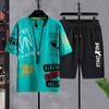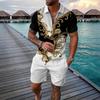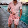 2023 primavera nova europeia e americana masculina 3D impressão digital manga curta polo shorts moda esportes terno casual