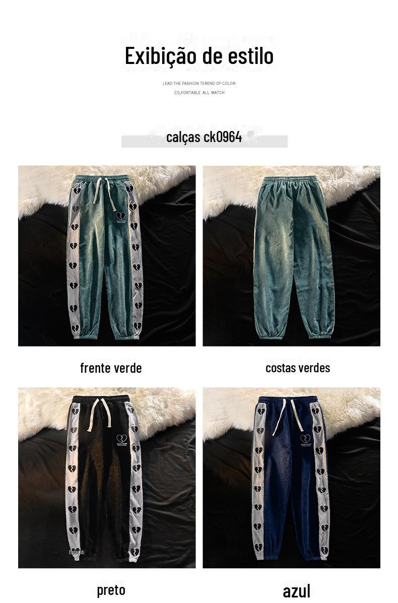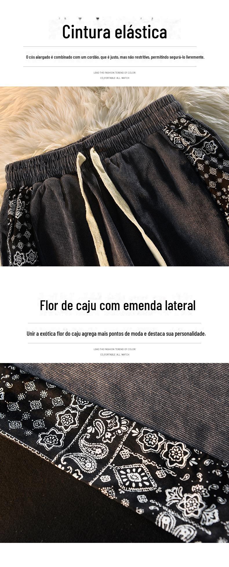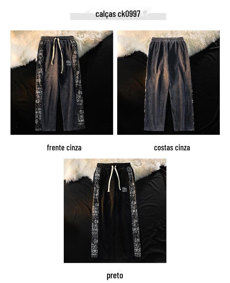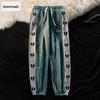 Amor retrô americano Corduroy cordão calças amarradas no tornozelo homens e mulheres marca de moda rua solta pernas largas calças retas esportivas