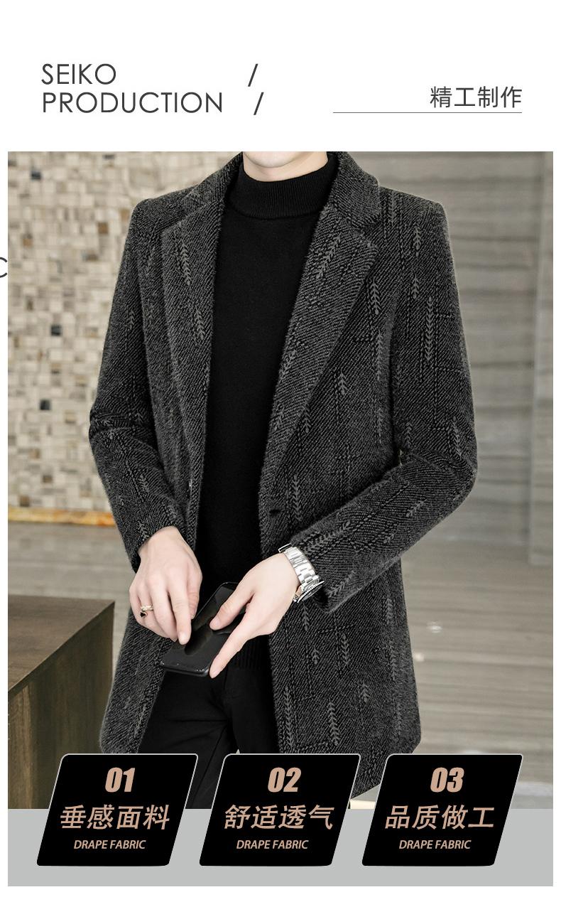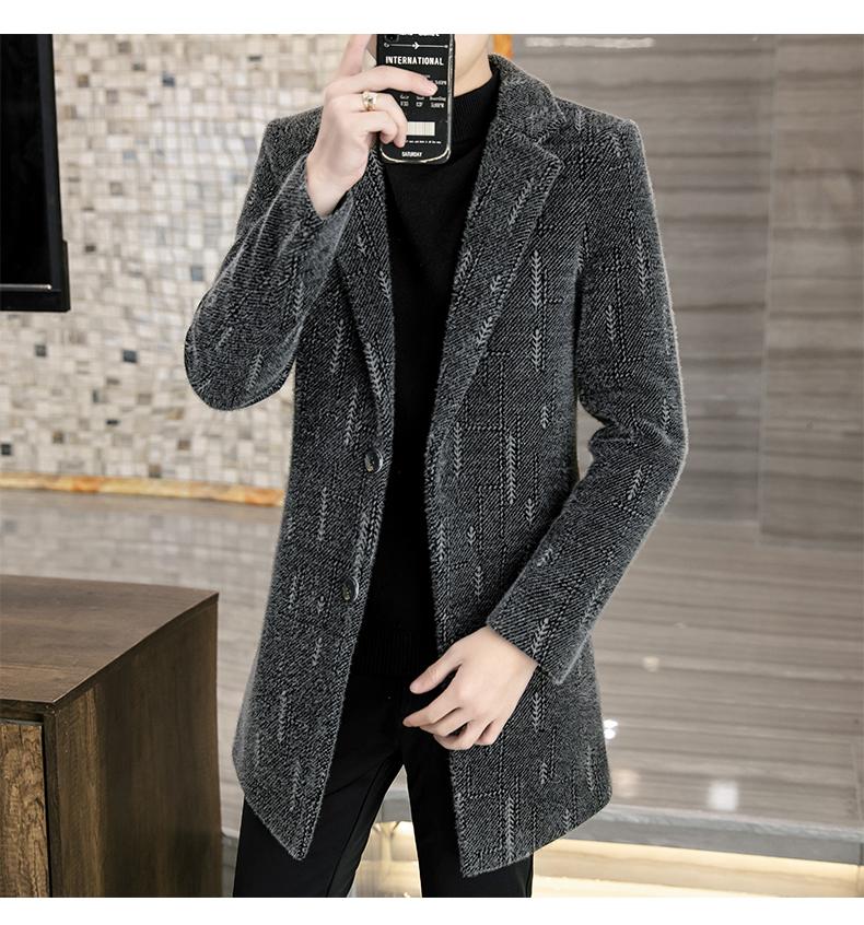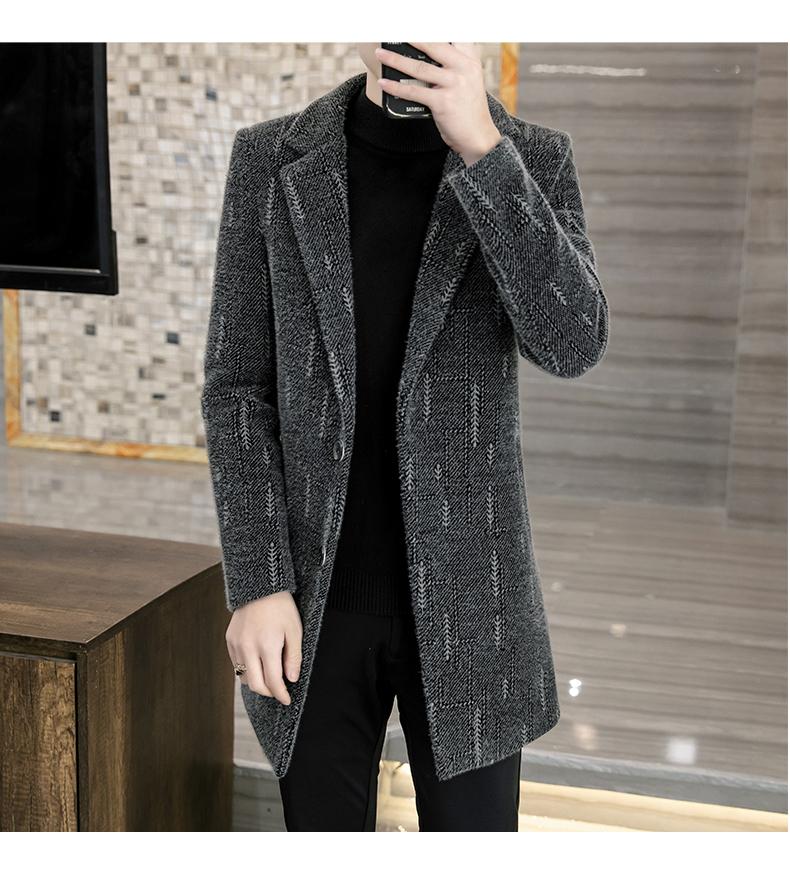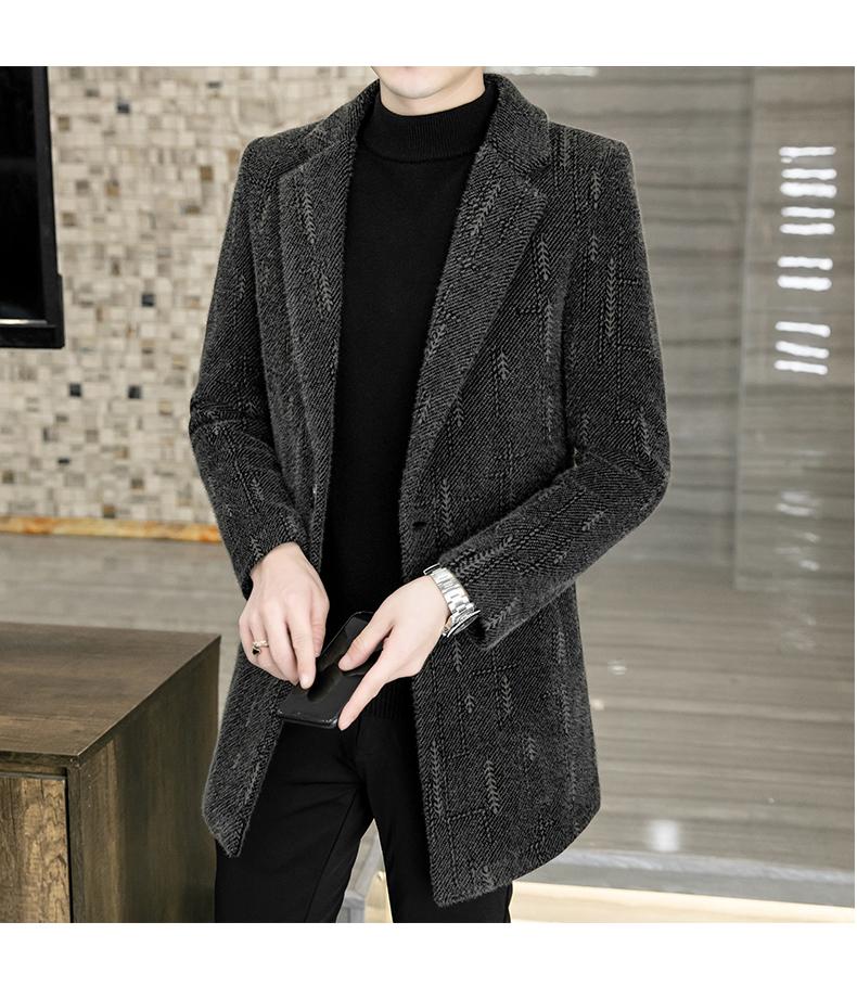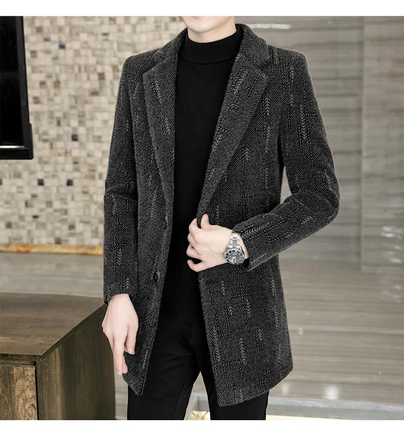 2022 Outono e Inverno Novo Casaco de Lã Casaco Casual Masculino Estilo Coreano Casaco de Lã Masculino Engrossado de Comprimento Médio
