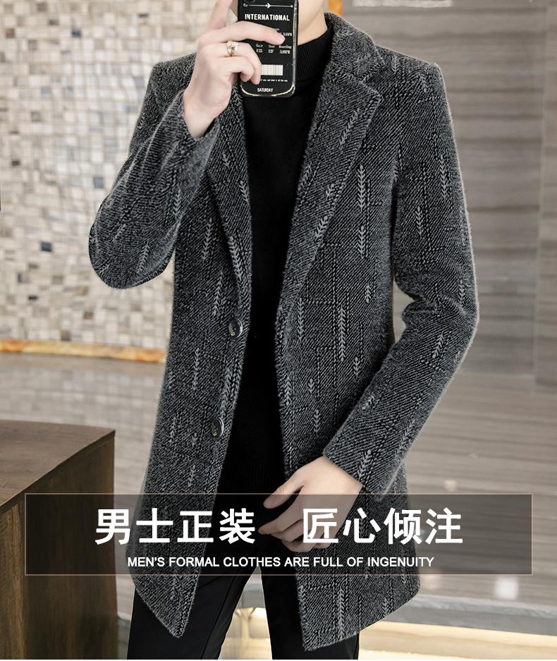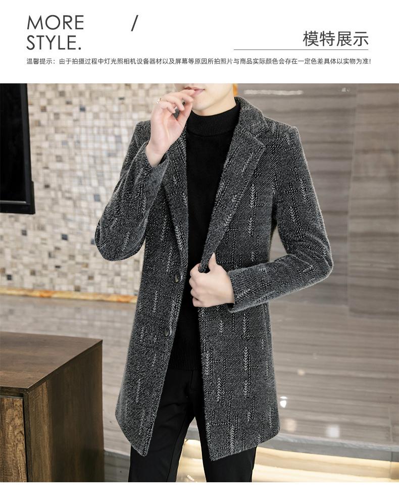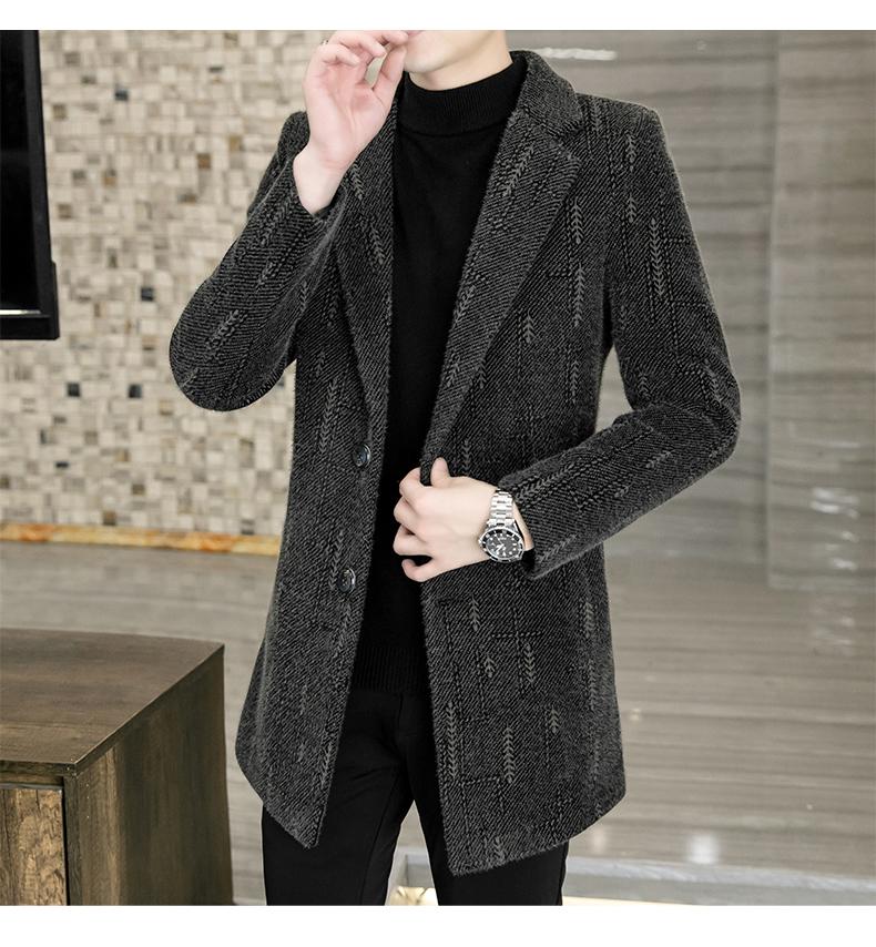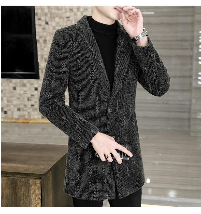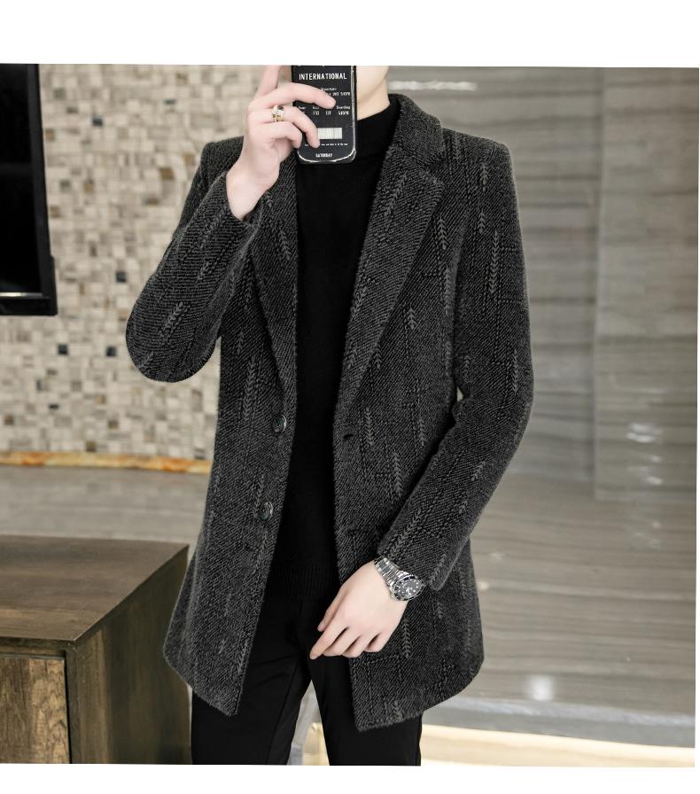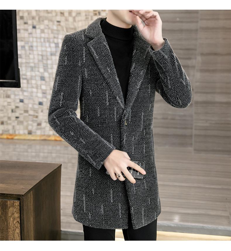2022 Outono e Inverno Novo Casaco de Lã Casaco Casual Masculino Estilo Coreano Casaco de Lã Masculino Engrossado de Comprimento Médio