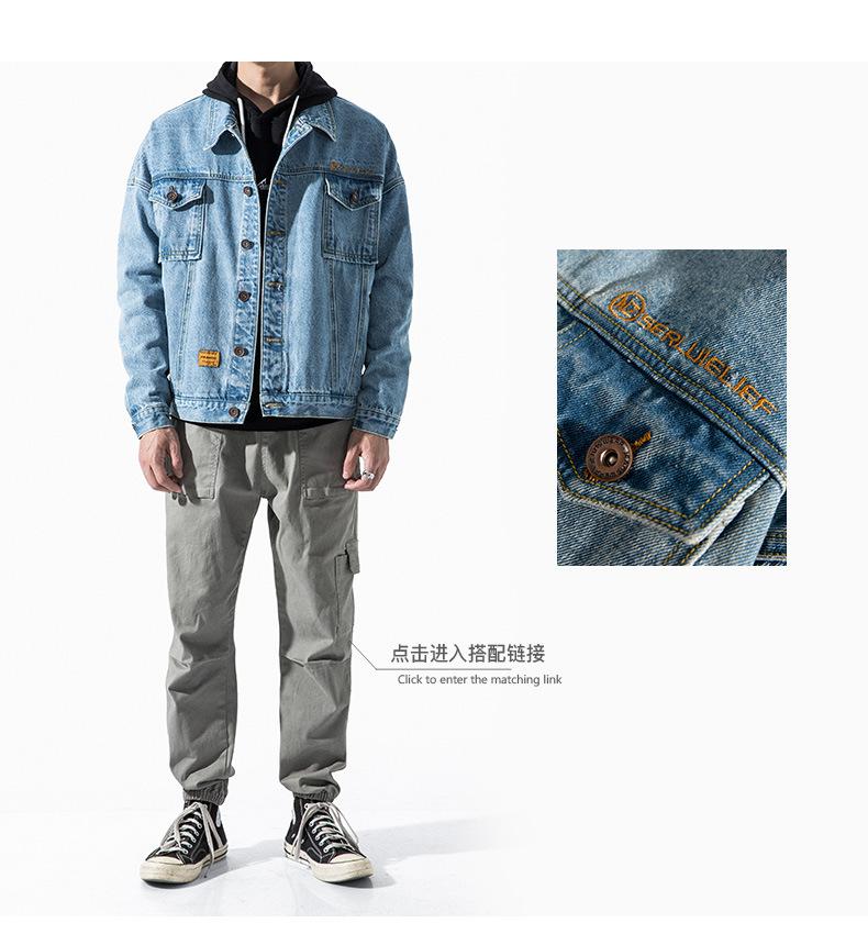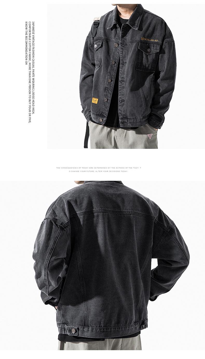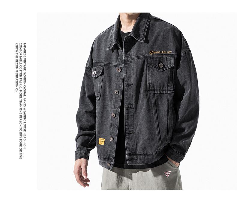 Jaqueta jeans masculina primavera e outono moda marca solta preto outono macacão masculino jaqueta masculina coreana moda all-match