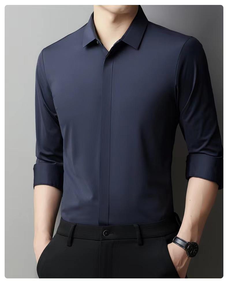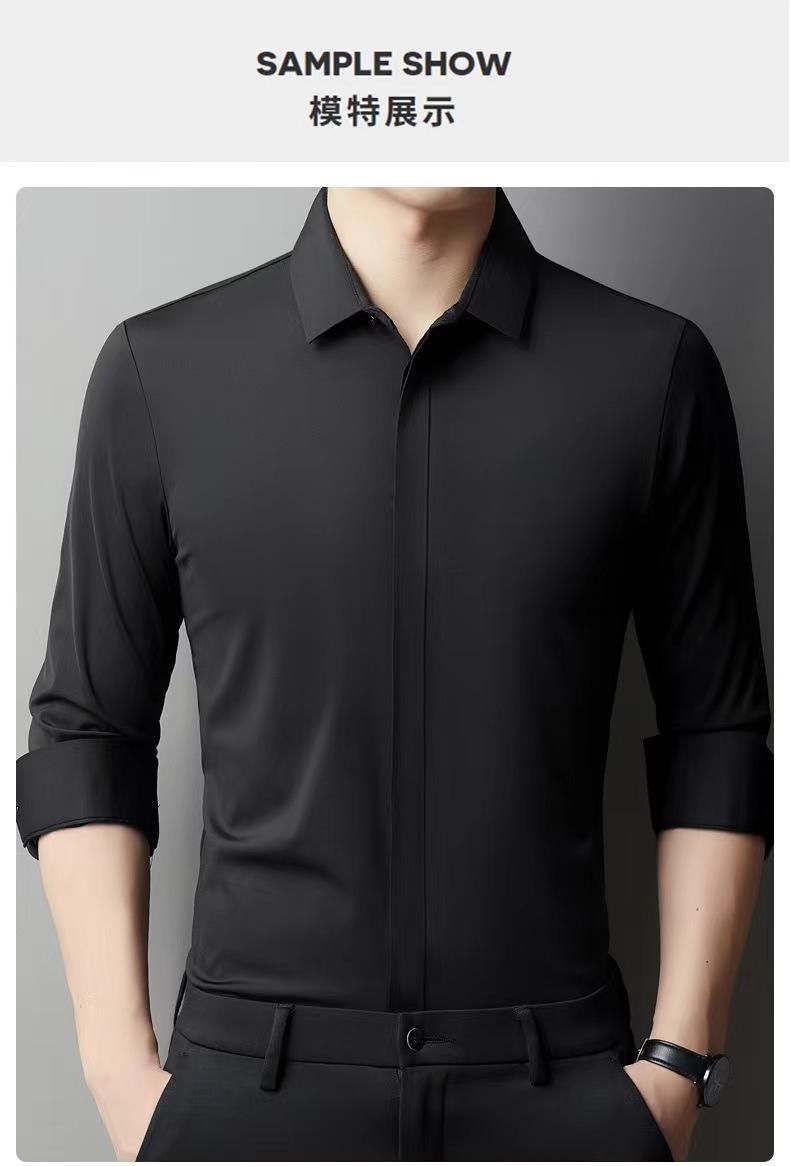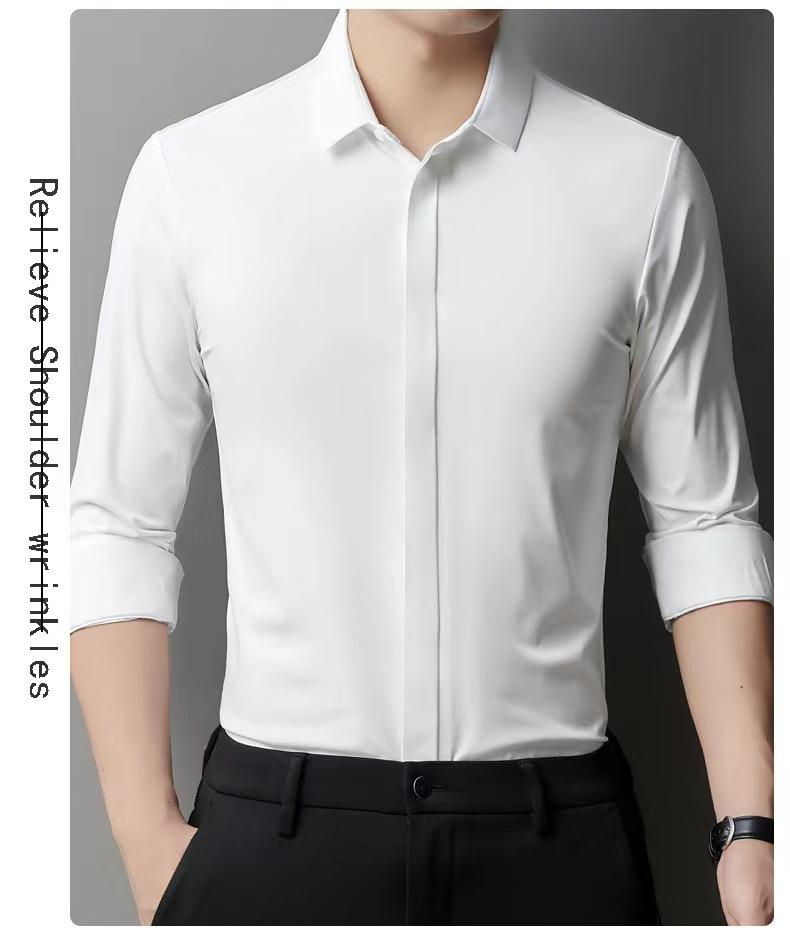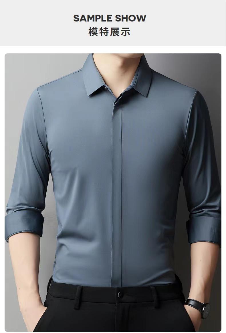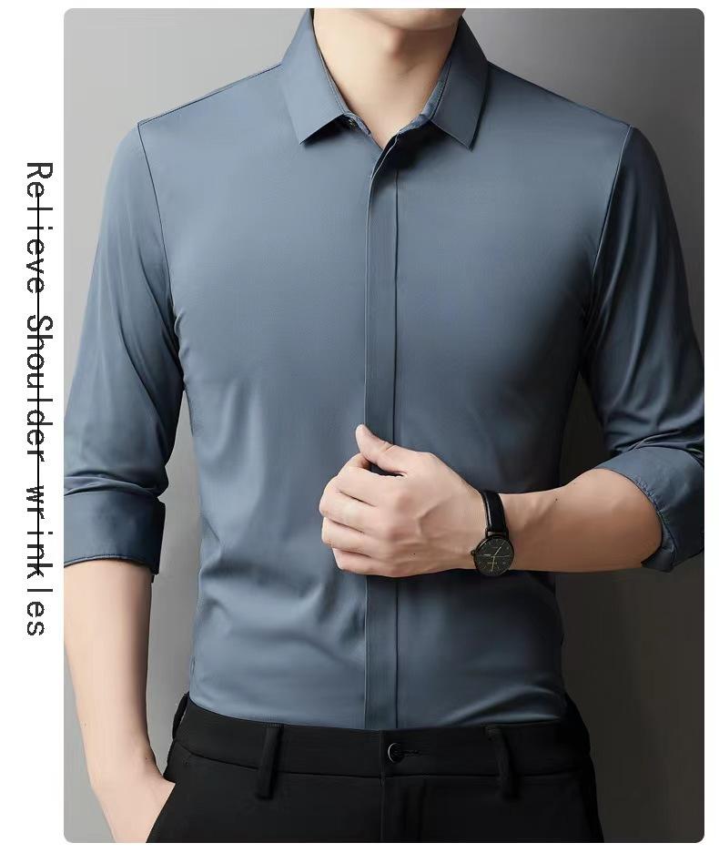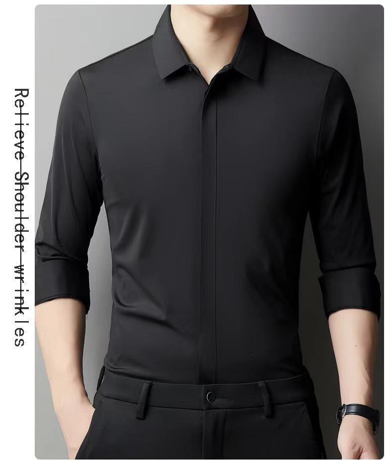 Compre [Alta elasticidade em todos os lados] Camisa de manga comprida sem costura masculina primavera e outono camisa de seda casual de negócios que não pode passar no atacado no Joom.pro