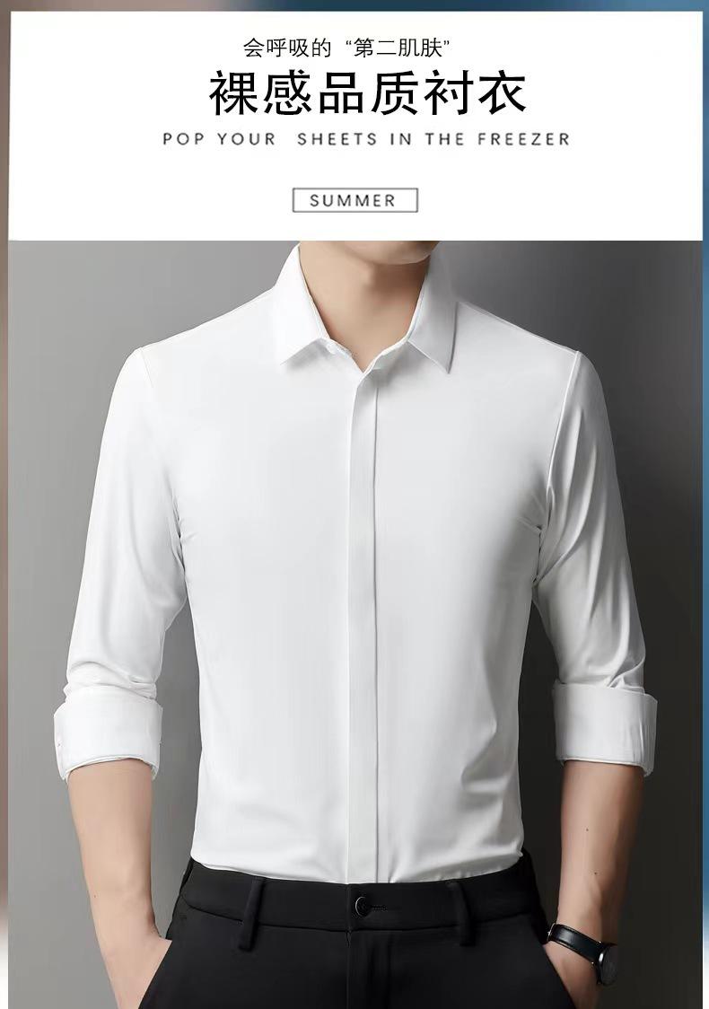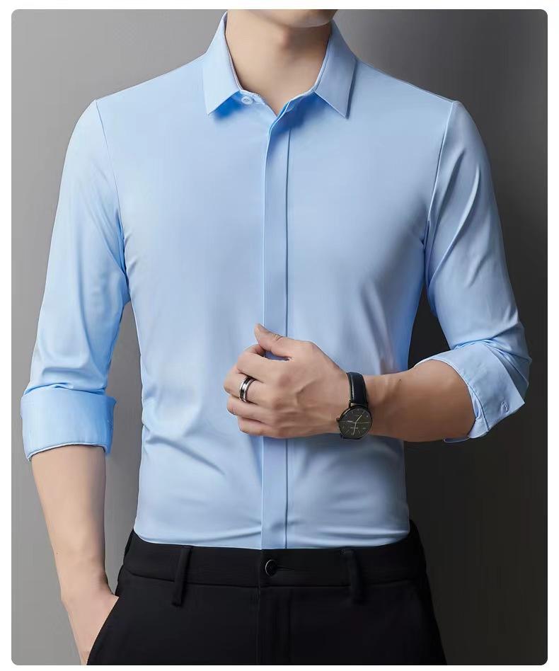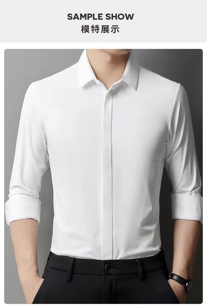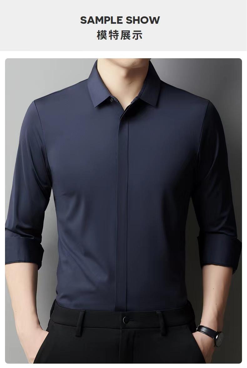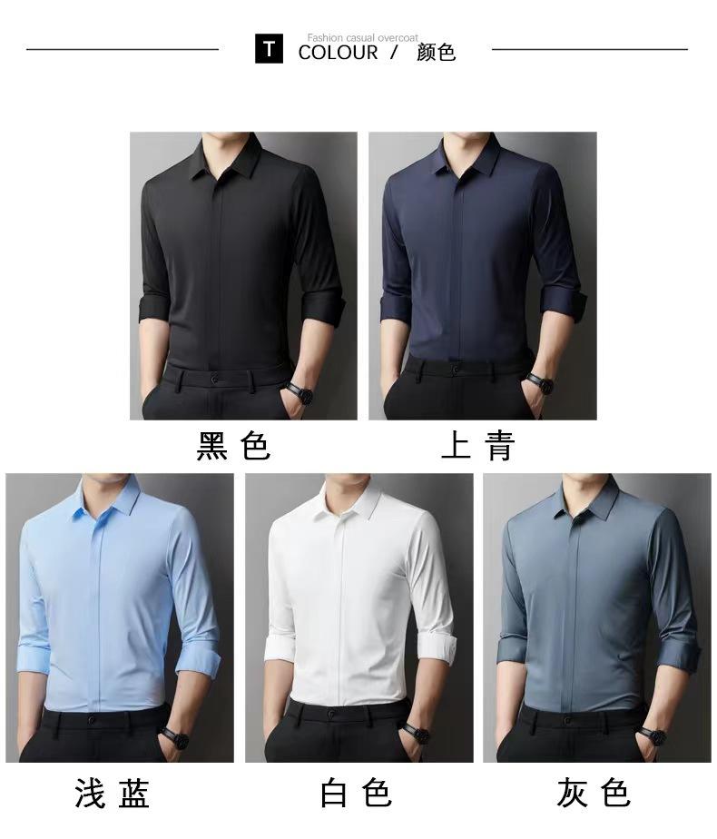 Compre [Alta elasticidade em todos os lados] Camisa de manga comprida sem costura masculina primavera e outono camisa de seda casual de negócios que não pode passar no atacado no Joom.pro