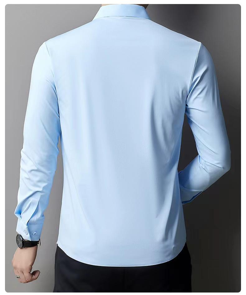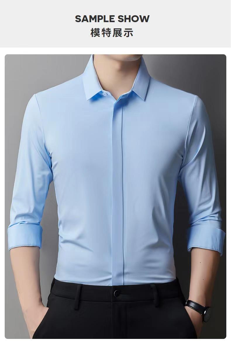 [Alta elasticidade em todos os lados] Camisa de manga comprida sem costura masculina primavera e outono camisa de seda casual de negócios que não pode passar