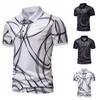 Verão Europeu e Americano Nova Amazon Casual Camisa Polo Masculina de Manga Curta Listrada Impressa Lapela Masculina Camiseta de Manga Curta