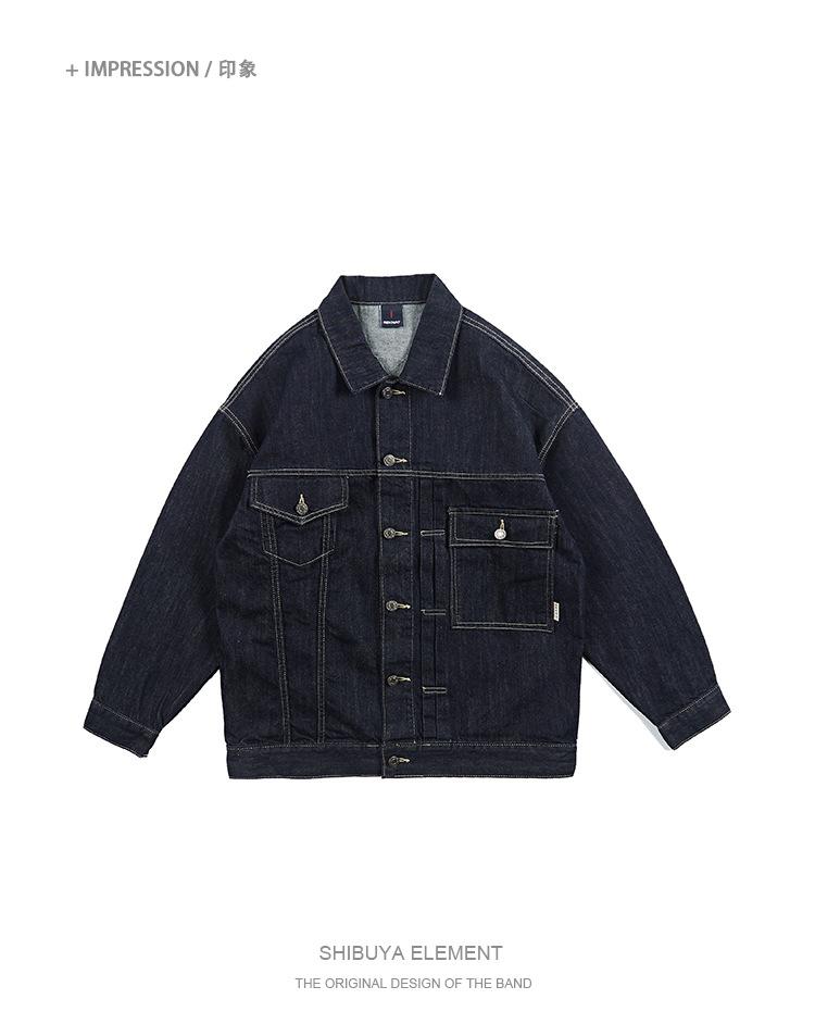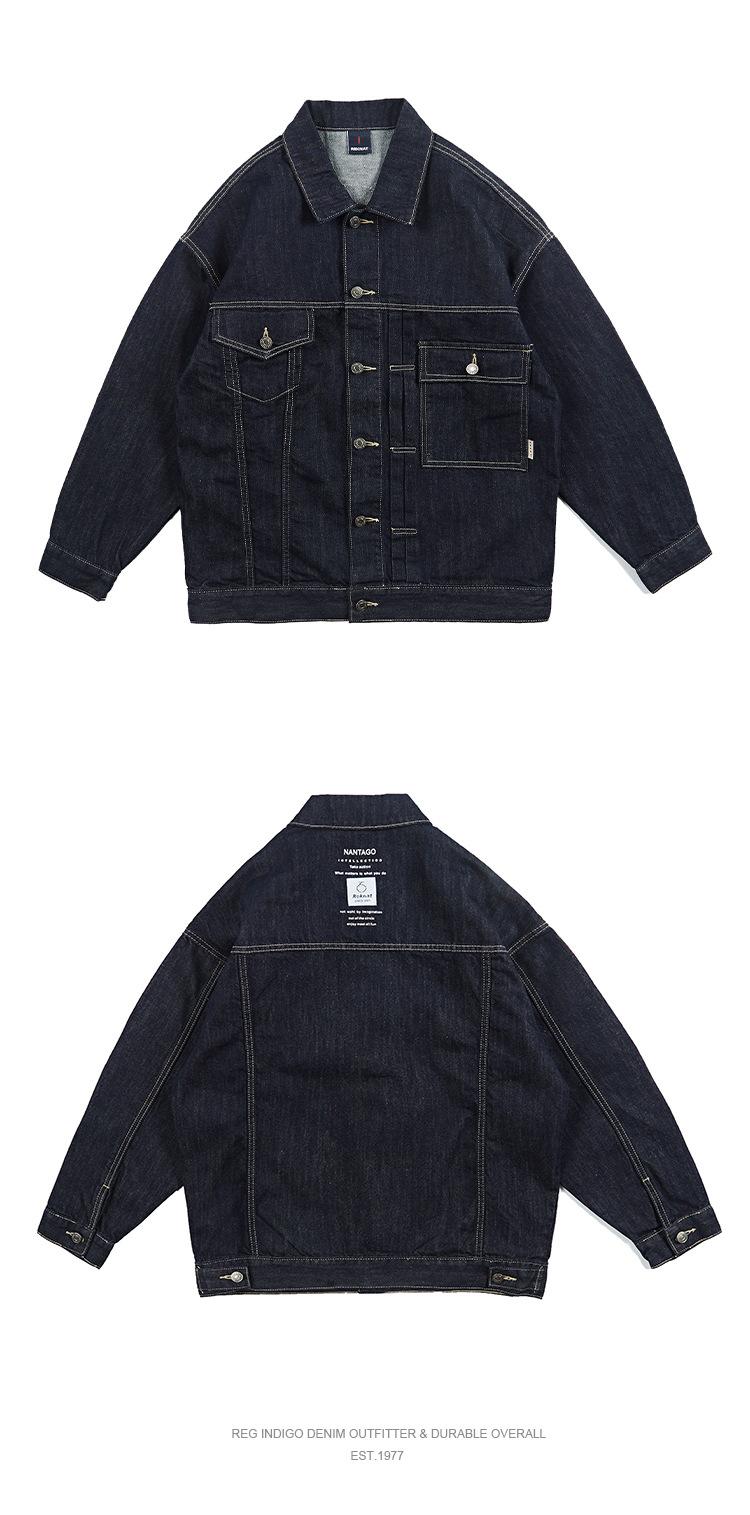 Jaqueta Jeans Masculina Retrô Sólida Versátil da Moda Primavera e Outono Multibolsos Casual