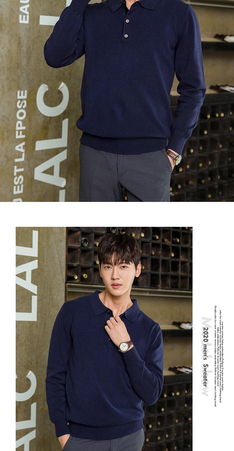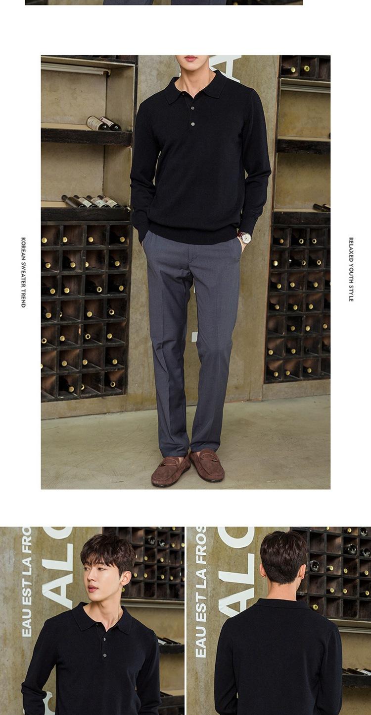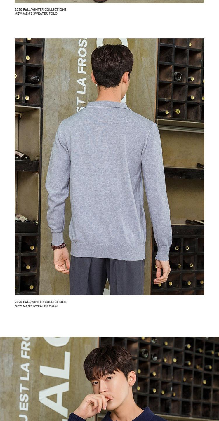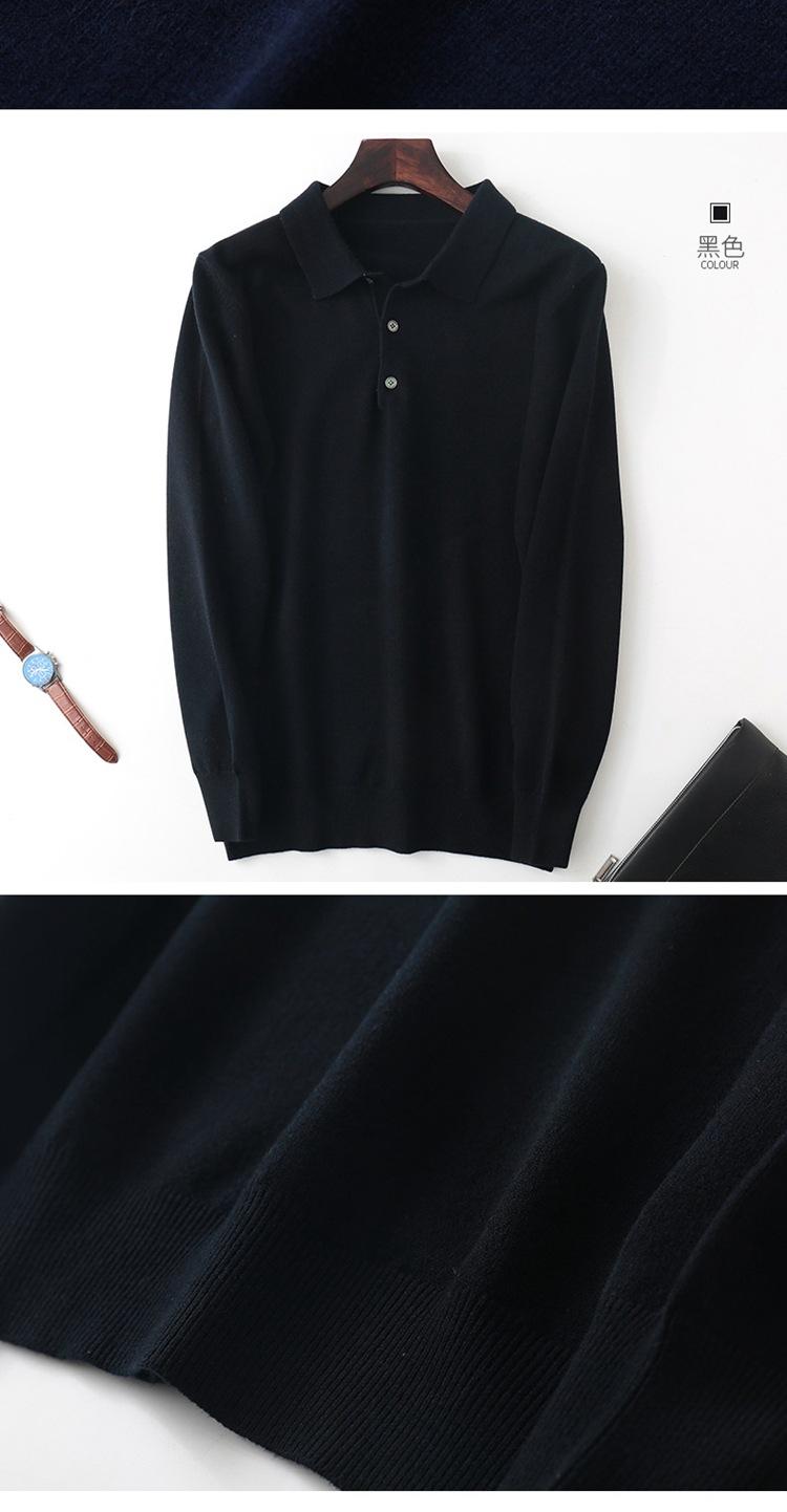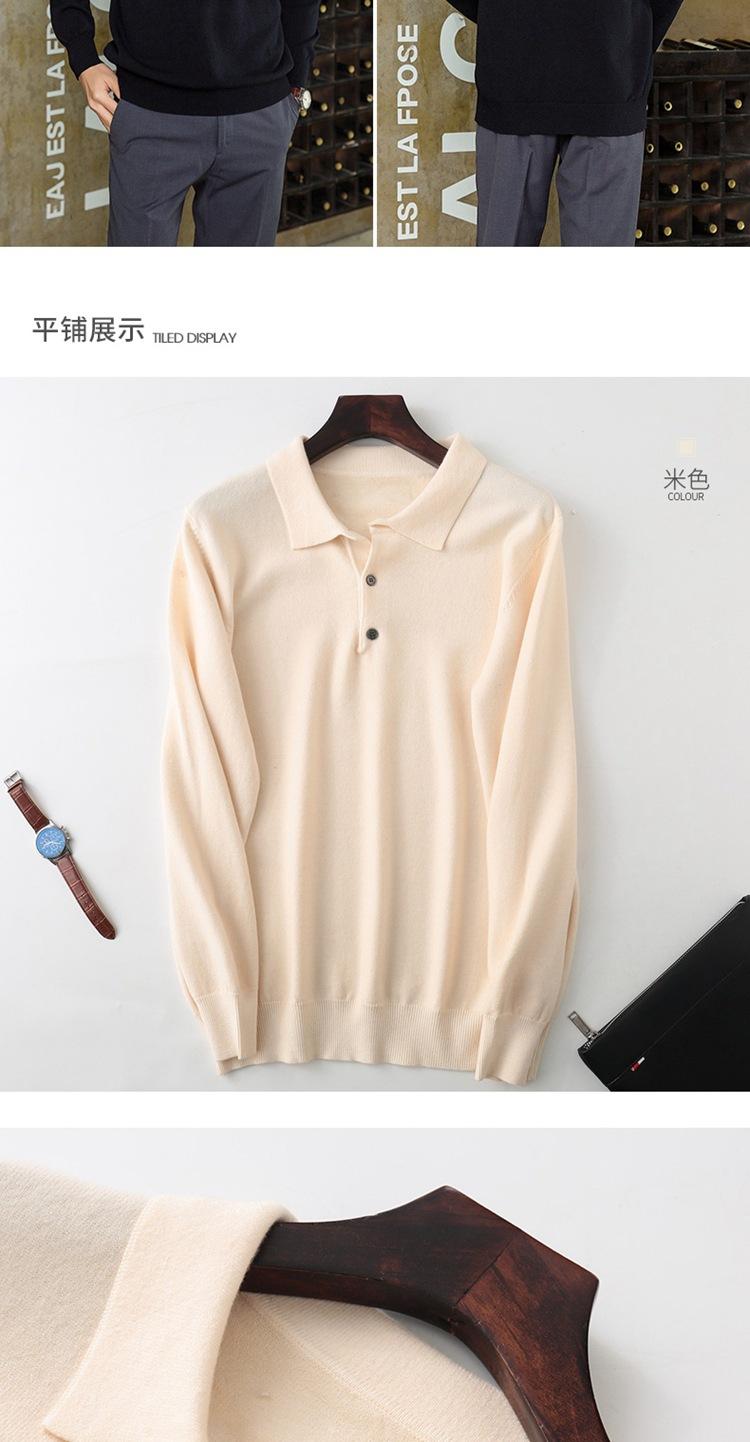 2023 Primavera e Outono Novo Suéter de Malha Masculino Gola Pullover Base Camisa Lapela Botão Manga Longa Cabelo Solto