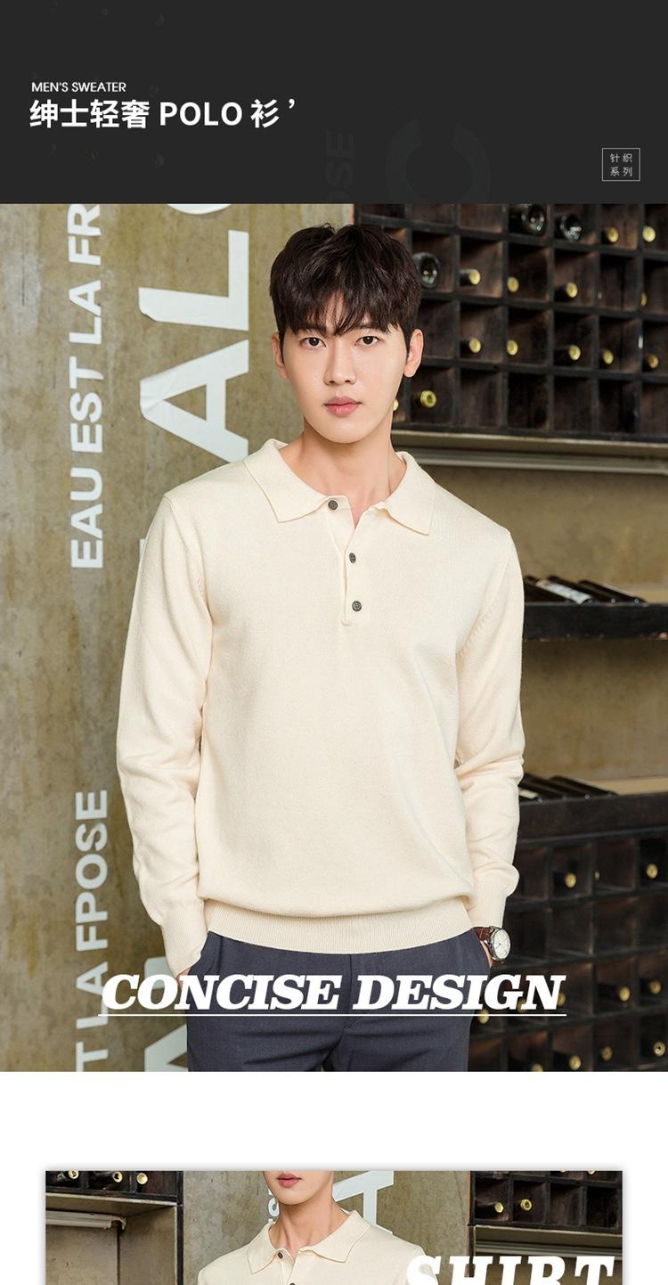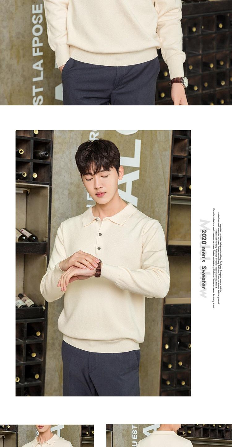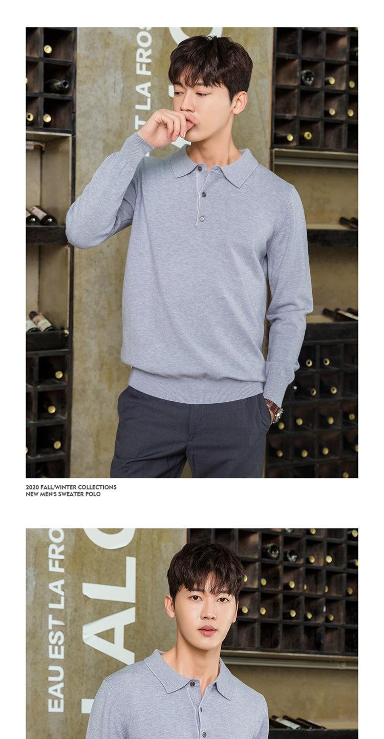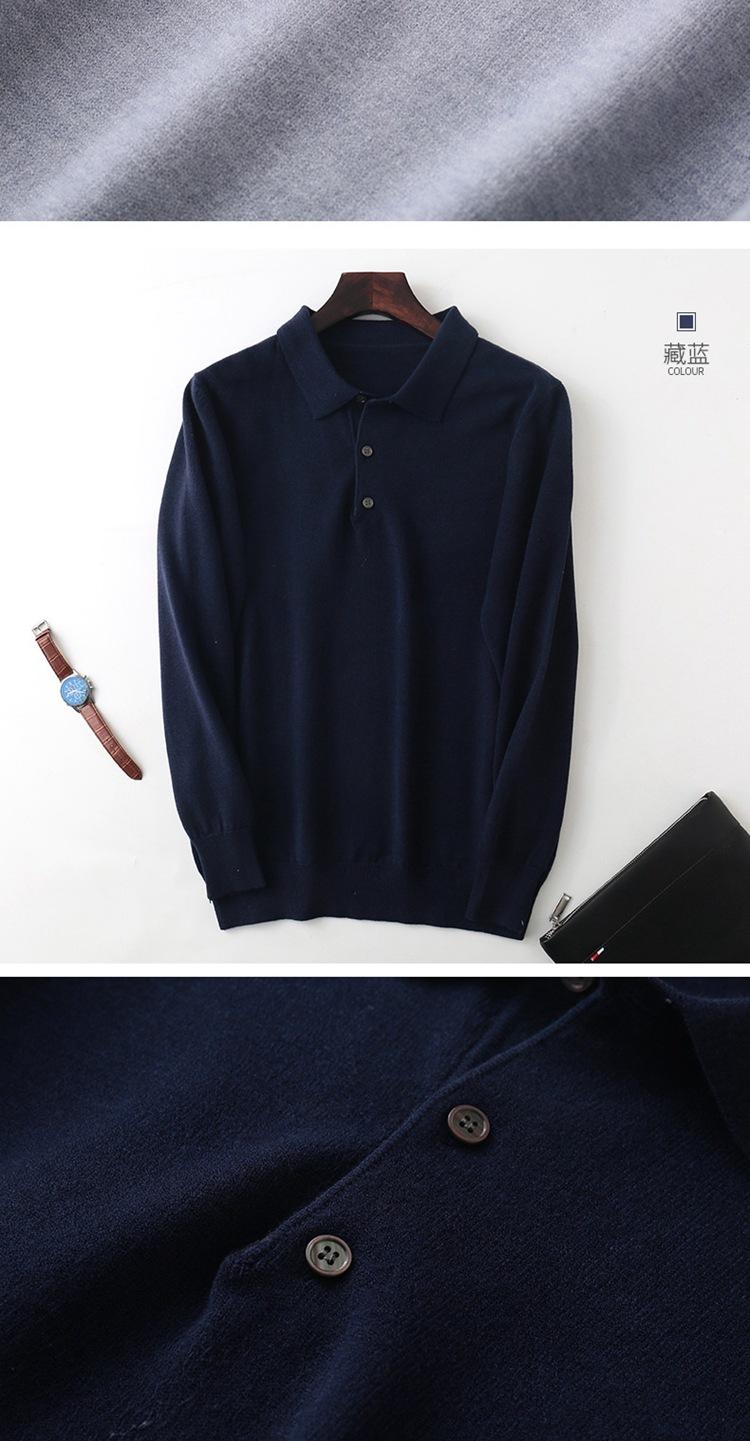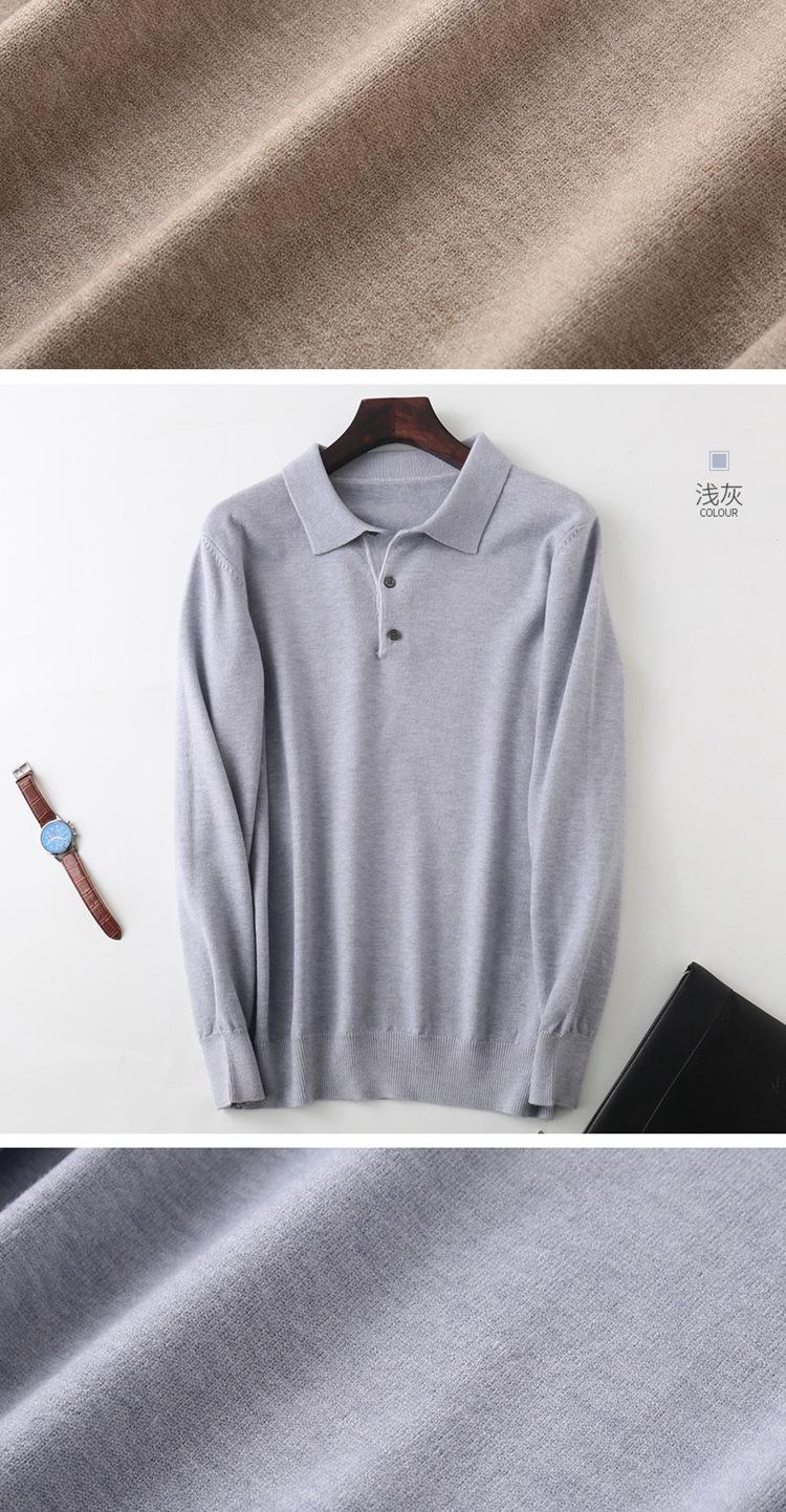 2023 Primavera e Outono Novo Suéter de Malha Masculino Gola Pullover Base Camisa Lapela Botão Manga Longa Cabelo Solto