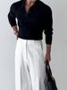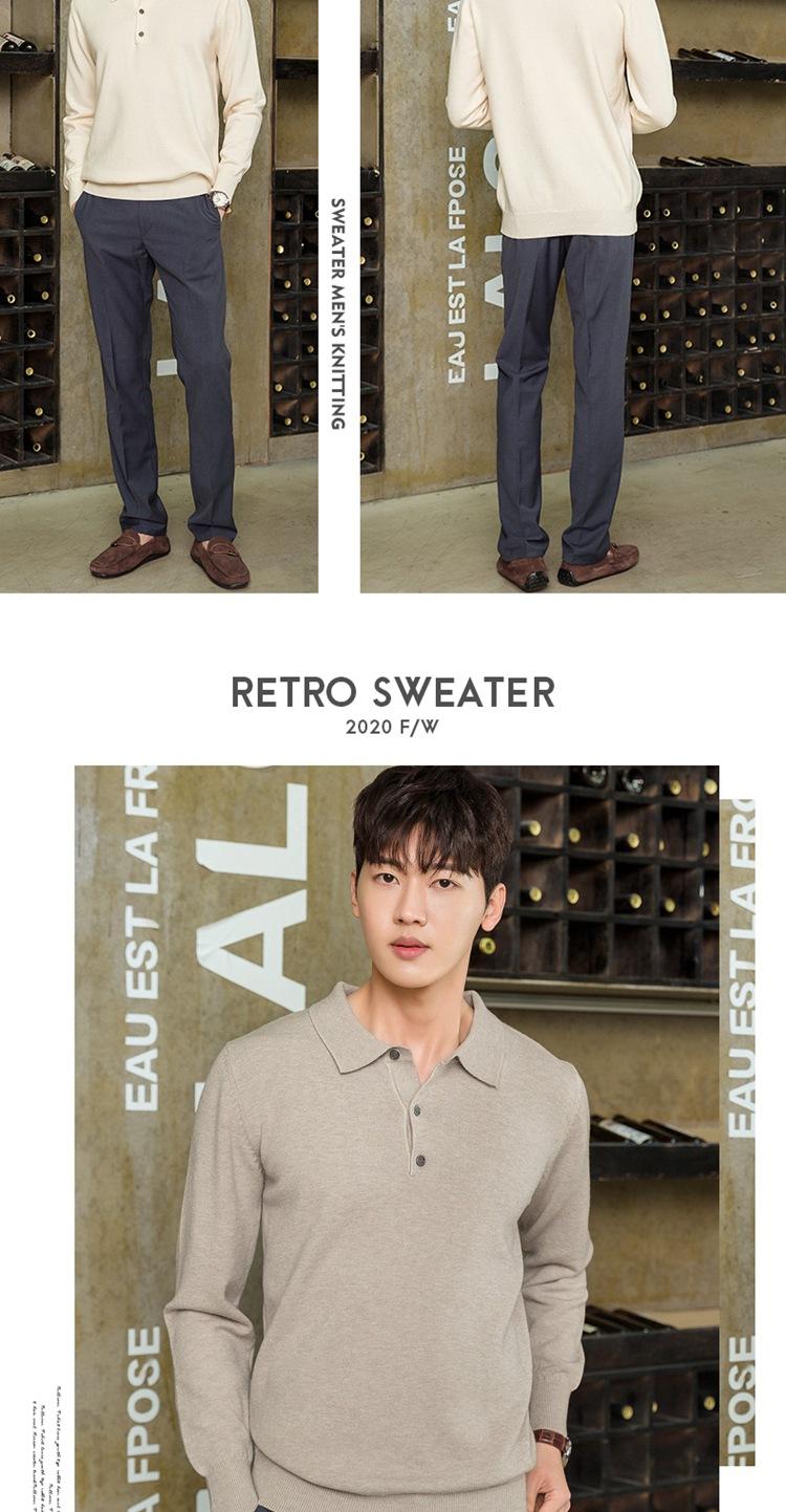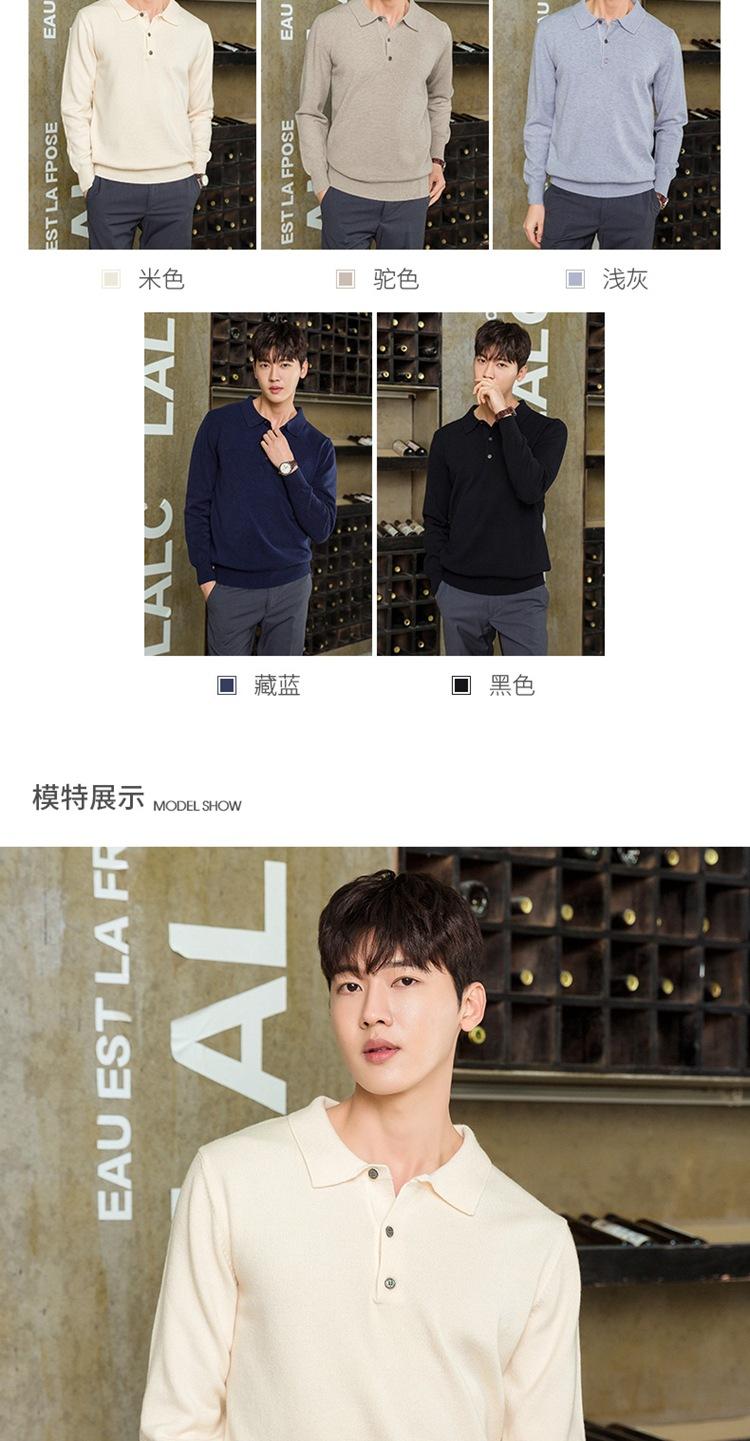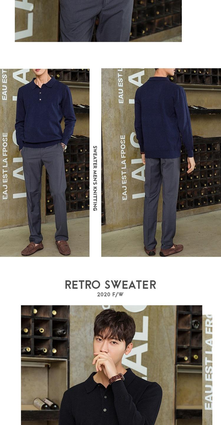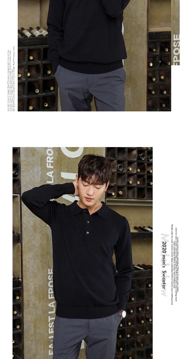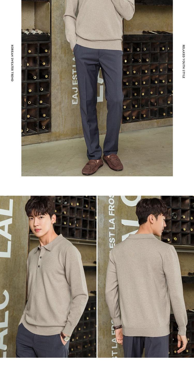2023 Primavera e Outono Novo Suéter de Malha Masculino Gola Pullover Base Camisa Lapela Botão Manga Longa Cabelo Solto