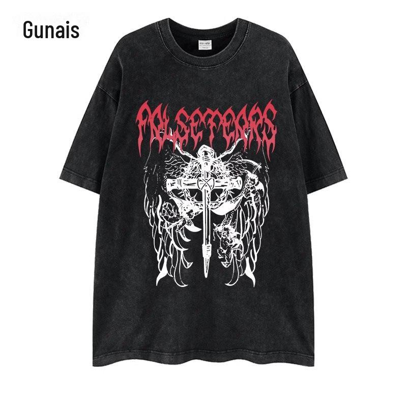 Estação independente transfronteiriça atacado marca de moda americana lavada velho nicho casal verão algodão solto ins camiseta de manga curta