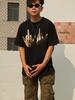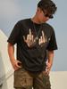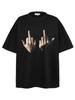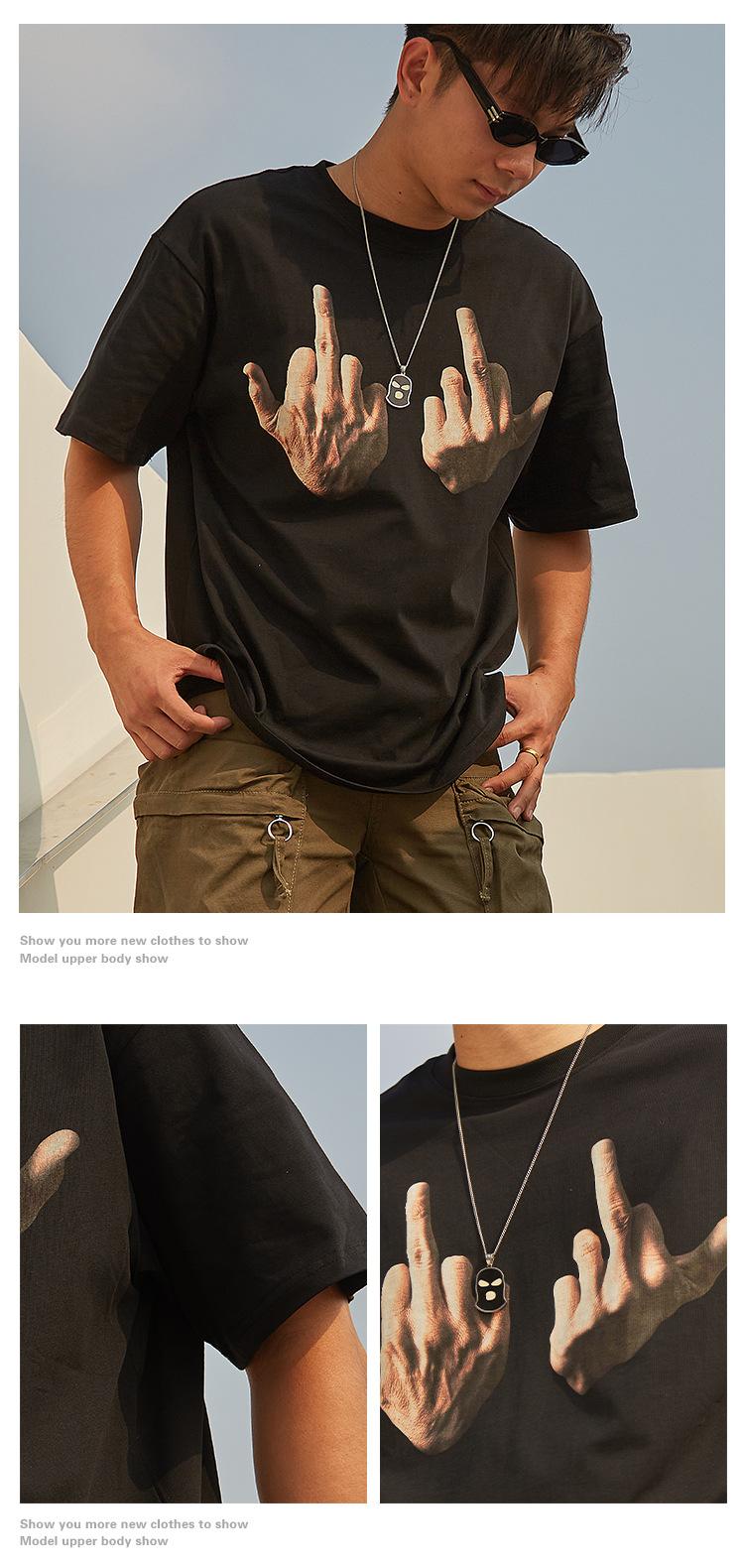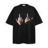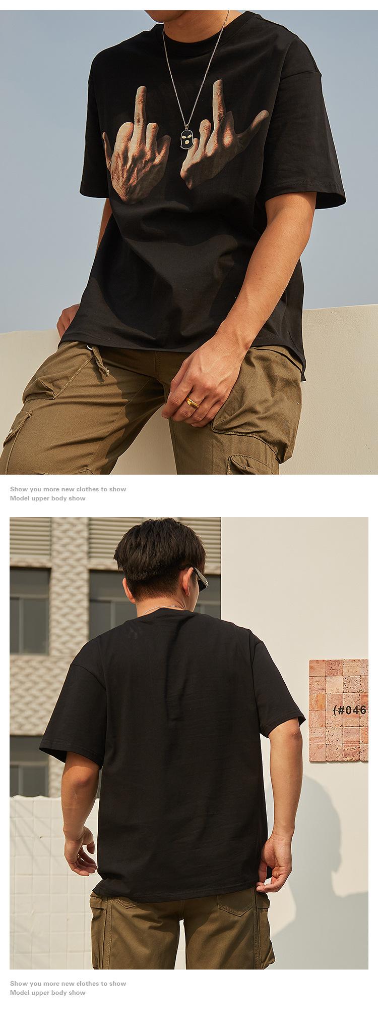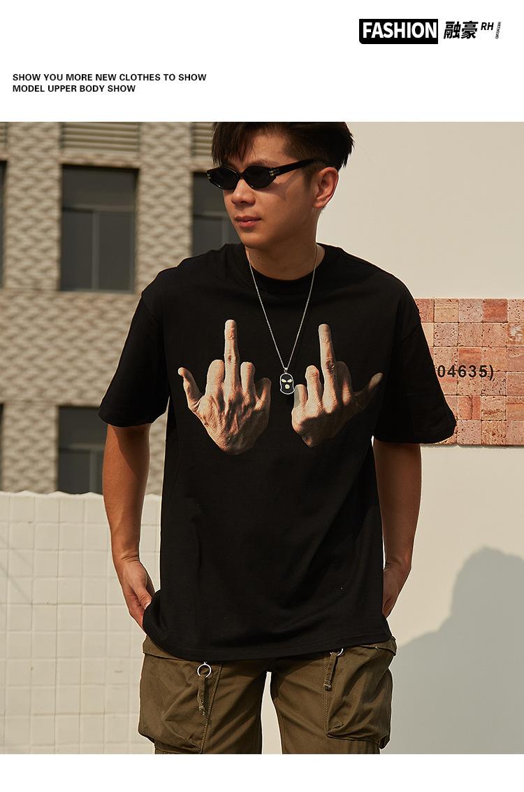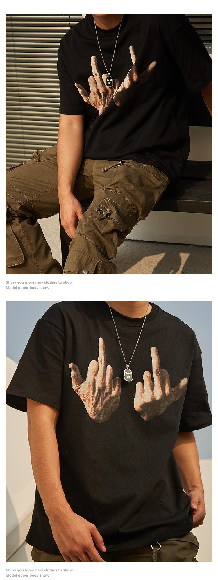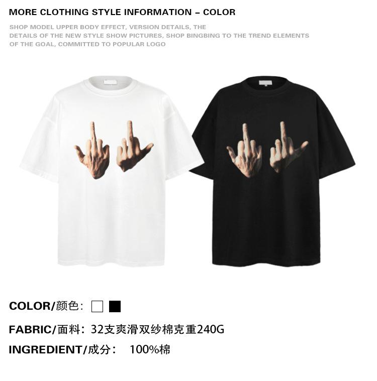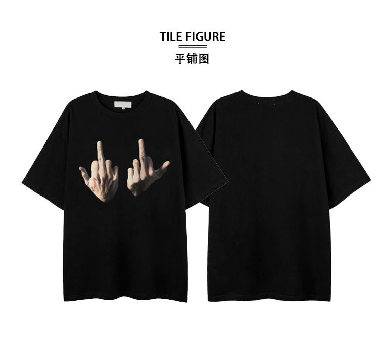 Camiseta americana high street 2024 Verão dedo médio estampado manga curta pullover meia manga top casal da moda