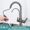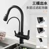 Saída de água de cobre de dupla função com torneira de parada pull-out torneira da cozinha pia rotativa bacia de legumes torneira quente e fria