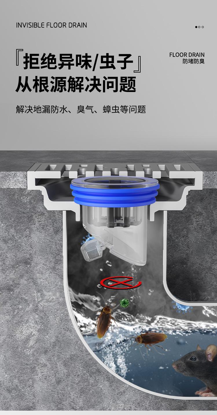 Dreno de piso Desodorizante Vaso sanitário Esgoto Desodorização Filtro Vaso sanitário Tampa de silicone Tubo à prova de insetos Núcleo interno Drenagem universal