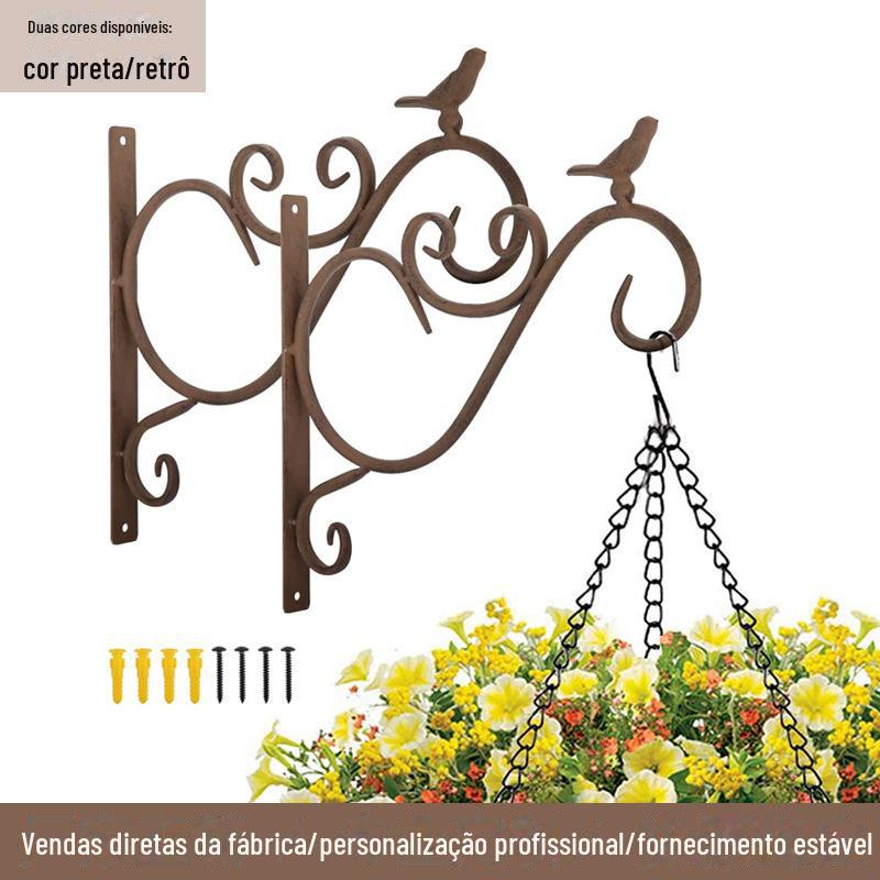 Cesto de Flores de Ferro Montado na Parede Europeu Metal Decorativo Pendurado Suporte de Cesto Pendurado Suporte de Flores Suspenso Sala de Estar Varanda Pendente de Planta Verde
