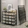 Ferro dobrável sapateira porta doméstica instalação de porta doméstica simples metal simples 2023 novo popular preto e branco multi-camada armário de sapatos