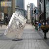 Large stainless steel cut out luminous sculpture oval ball creative metal square stool stainless steel commerc...