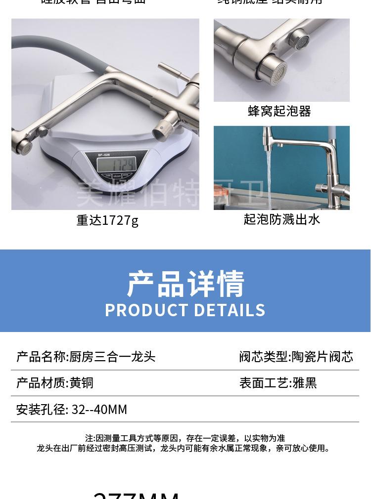 Three-in-one kitchen cleaning faucet (electroplating), Three-in-one kitchen faucet (black), Three-in-one kitchen faucet (brushed)