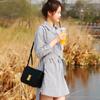 Mamão leite primavera novo estilo coreano vestido listrado de comprimento médio slim-fit renda-up cintura frente vestido curto para trás moda