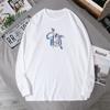 2023 Nova Primavera e Outono Coreano Impresso T-shirt Base Manga Comprida Top Solto Plus Tamanho Grande Moda Masculina Manga Comprida